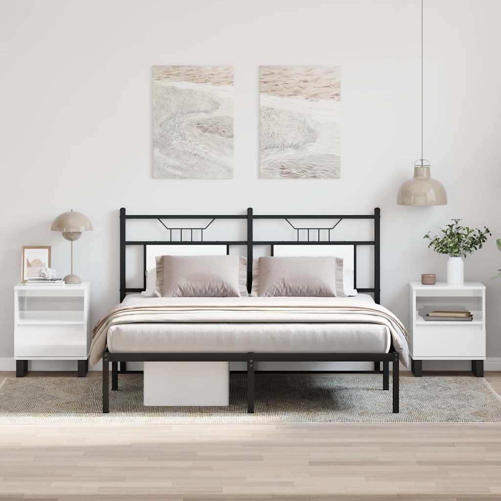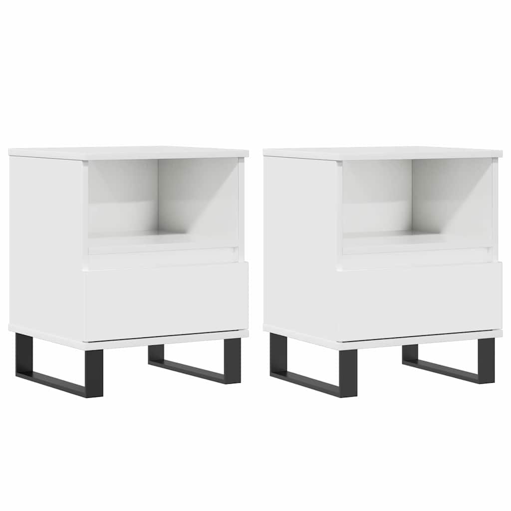 Sängbord 2 st vit högglans 40x35x50 cm konstruerat trä