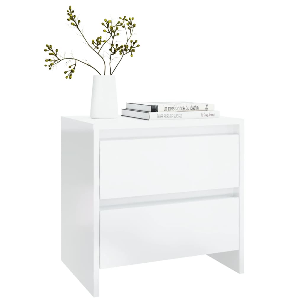 Sängbord 2 st vit högglans 45x34,5x44,5 cm konstruerat trä
