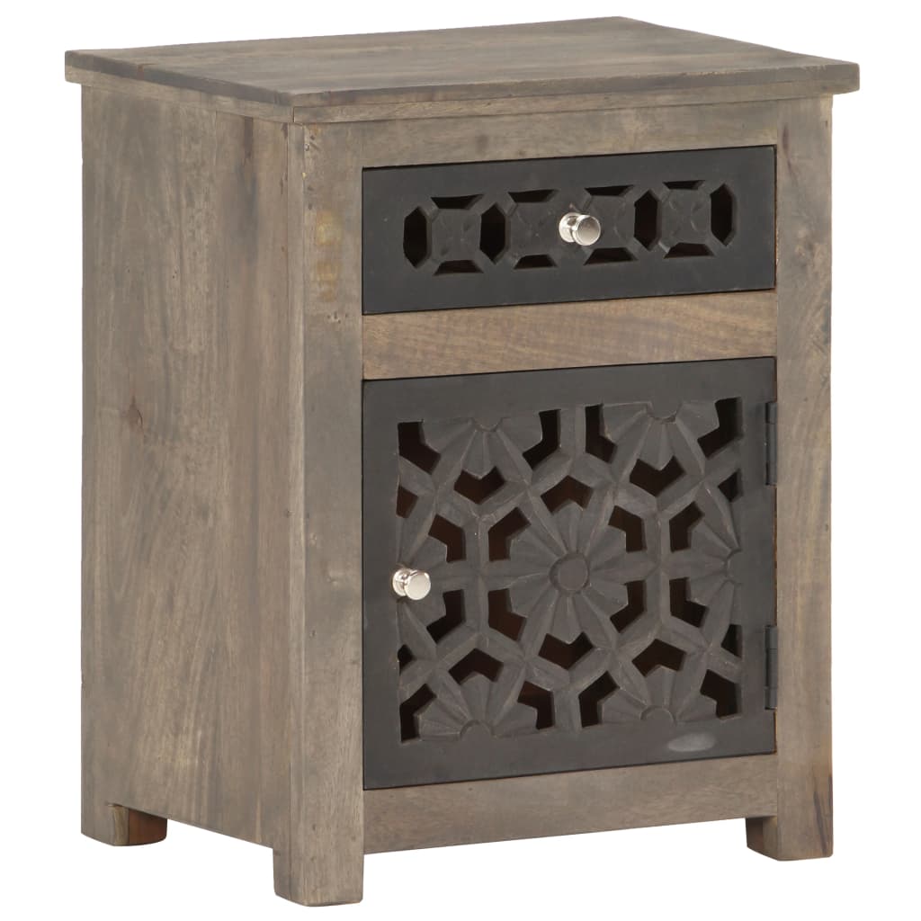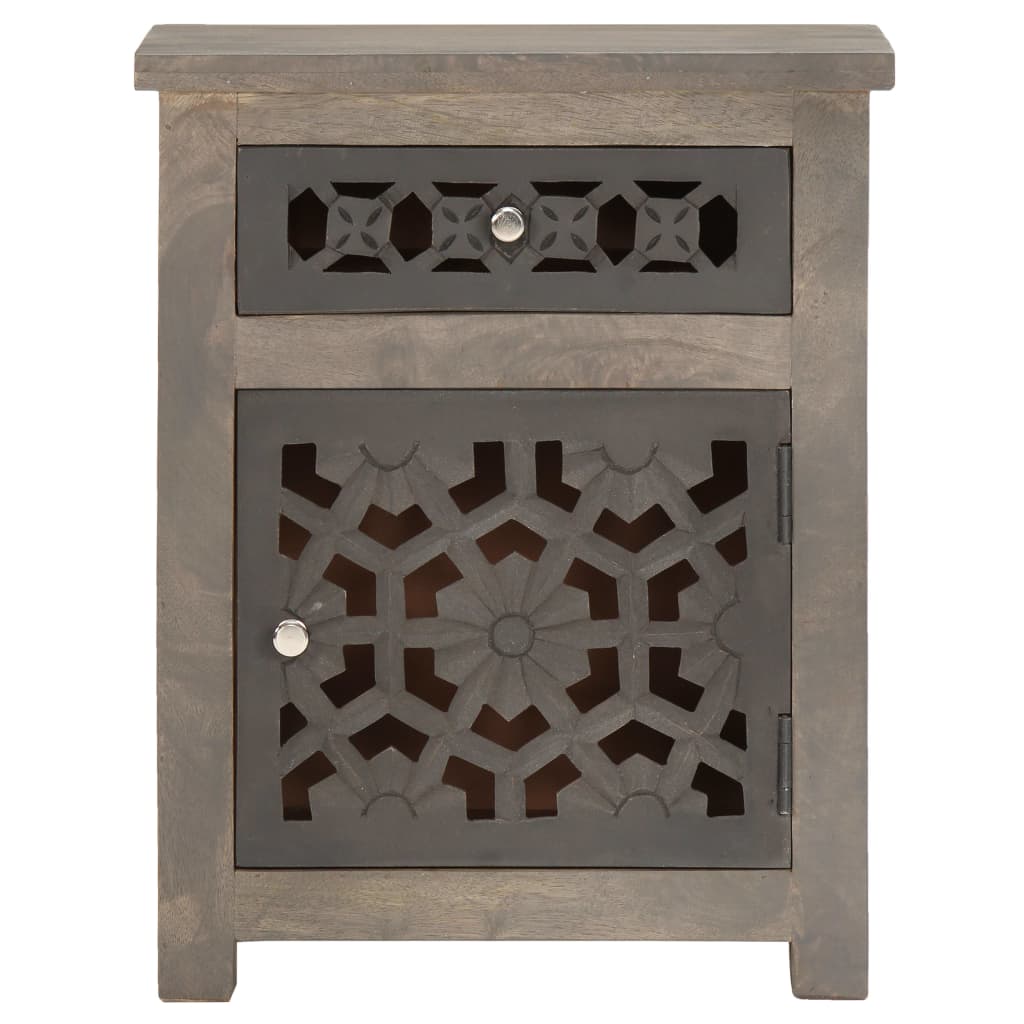 Detta klassiska nattduksbord i trä med snidad blomdesign skapar en rustik känsla i din inredning.