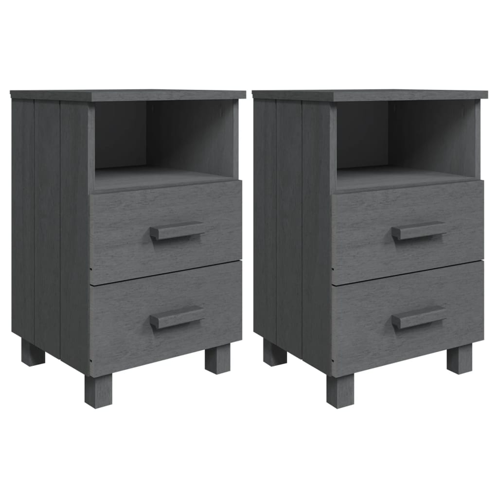Sängbord HAMAR 2 st mörkgrå 40x35x62 cm massivt trä