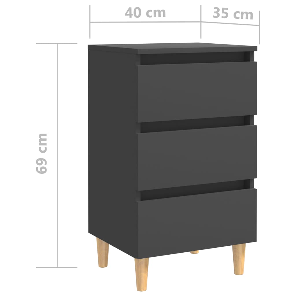 Sängbord med ben i massivt trä 2 st grå 40x35x69 cm