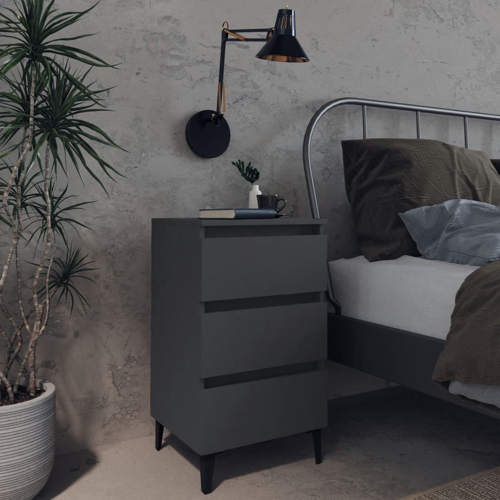 Sängbord med metallben 2 st grå 40x35x69 cm