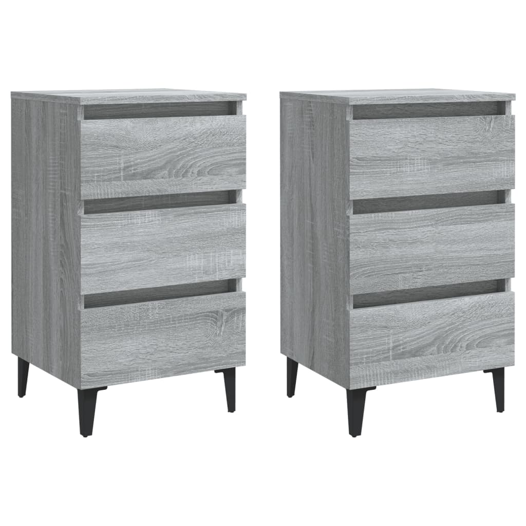 Sängbord med metallben 2 st grå sonoma 40x35x69 cm