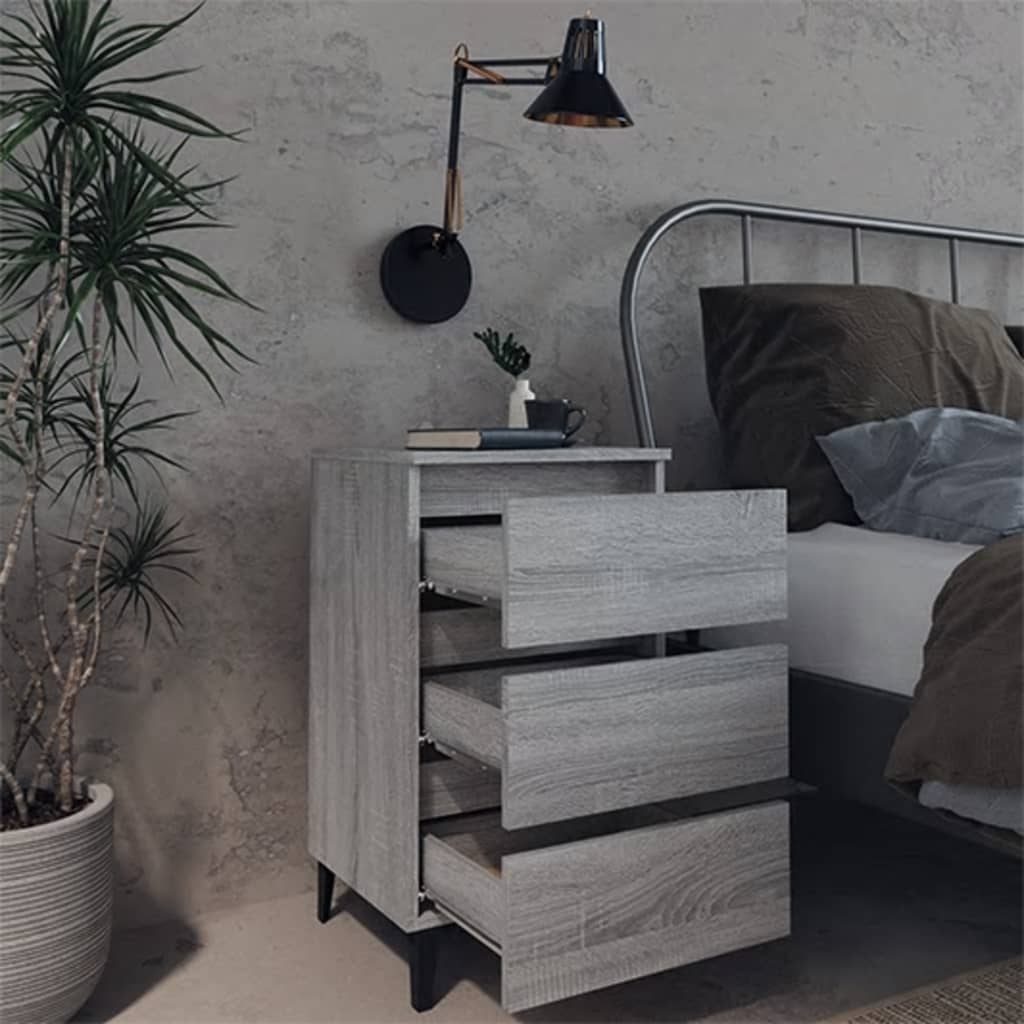 Sängbordet med fyra metallben är stabilt och robust. Dessutom är nattduksbordet utrustat med tre lådor med gott om lagringsutrymme för att hålla föremålen ordnade och organiserade. Lätt att rengöra, använd bara en fuktig trasa.