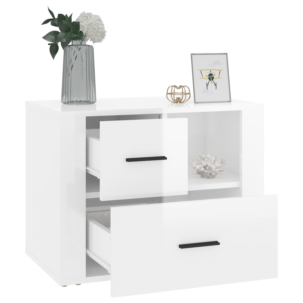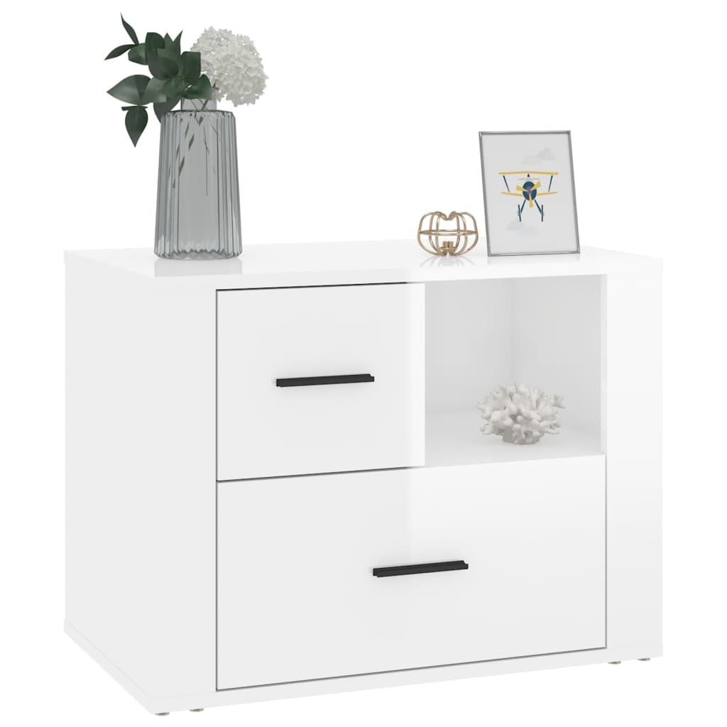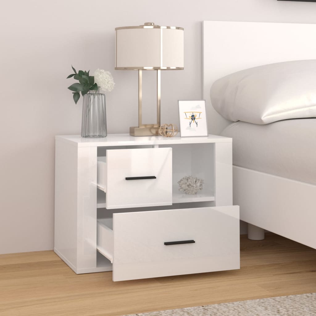 Sängbord vit högglans 60x36x45 cm konstruerat trä