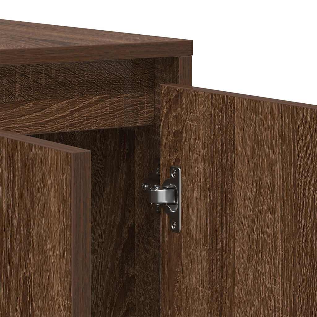 - Skötsel & Underhåll: Att hålla detta sidobord i toppform är enkelt; torka bara av med en torr trasa. Undvik starka rengöringsmedel som kan skada det konstruerade träet. För säkerhets skull, använd väggfästet som följer med för att förhindra att det tippar.