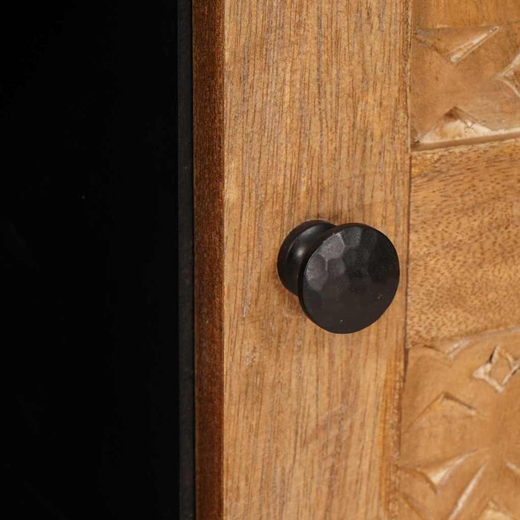 Den här stiliga träskänken är en perfekt mix av stil och funktionalitet, och är ett supertillskott i vilket modernt hem som helst. Den är främst gjord av massivt mangoträ och är stark och pålitlig, perfekt för att förvara allt från vardagsrumsprylar till andra saker. Med sitt minimalistiska uttryck, rena linjer och släta dörrar ger den en modern känsla som passar till alla inredningar. Dess rymliga fack och stabila konstruktion lovar både hållbarhet och stil. Oavsett om du förvarar middagsserviser eller visar upp dekorativa föremål, passar den perfekt för både praktiska och stiliga behov.