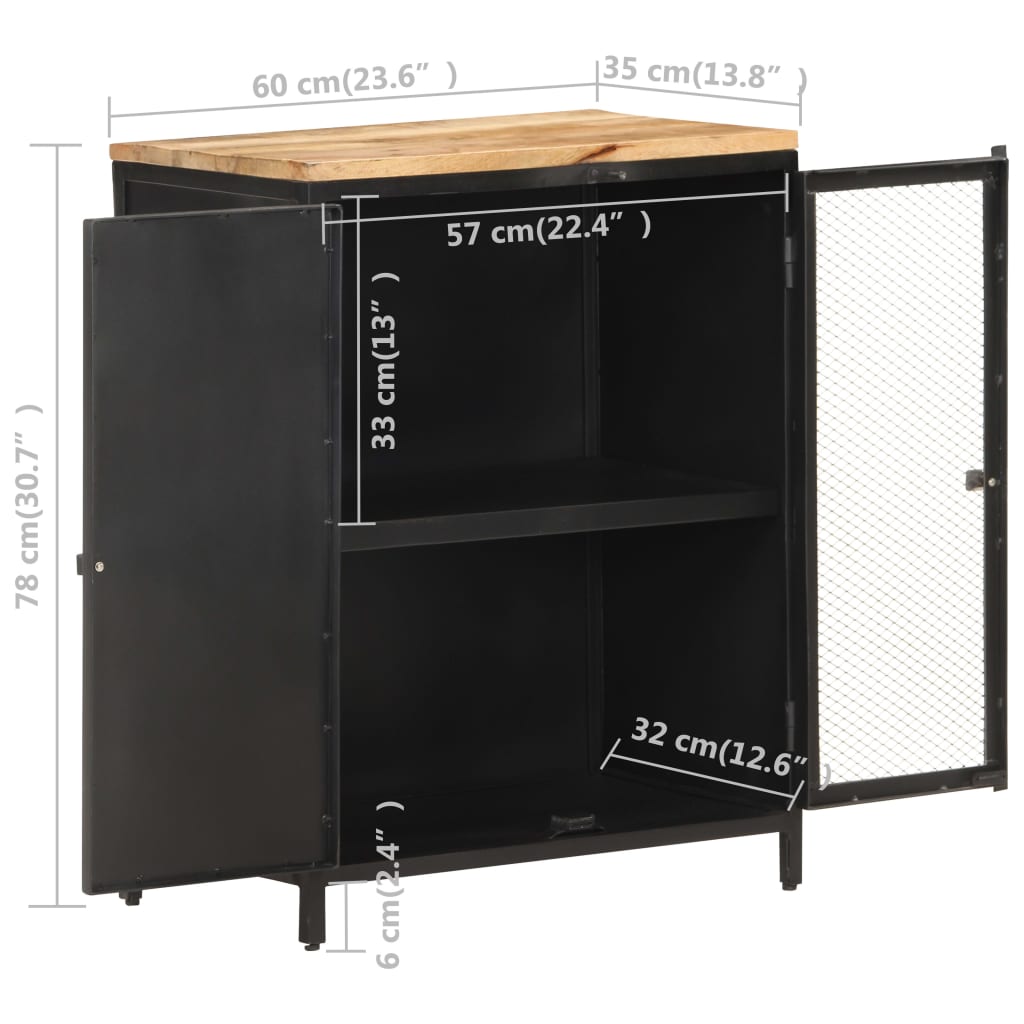 Denna enkla skänk är tillverkad i massivt grovt mangoträ och järn och har en praktisk design. Den är perfekt för att skapa en klassisk stil i inredningen.
