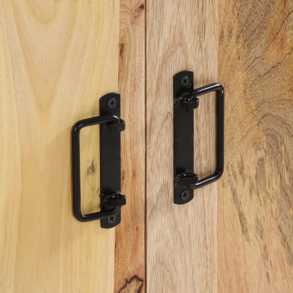 - Material: Massivt mangoträ med naturlig finish, konstruerat trä, metall