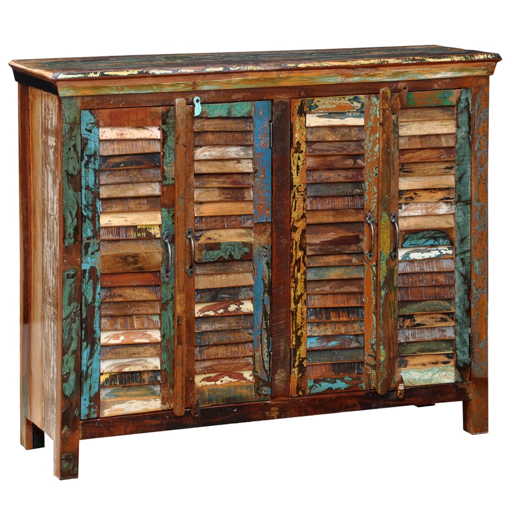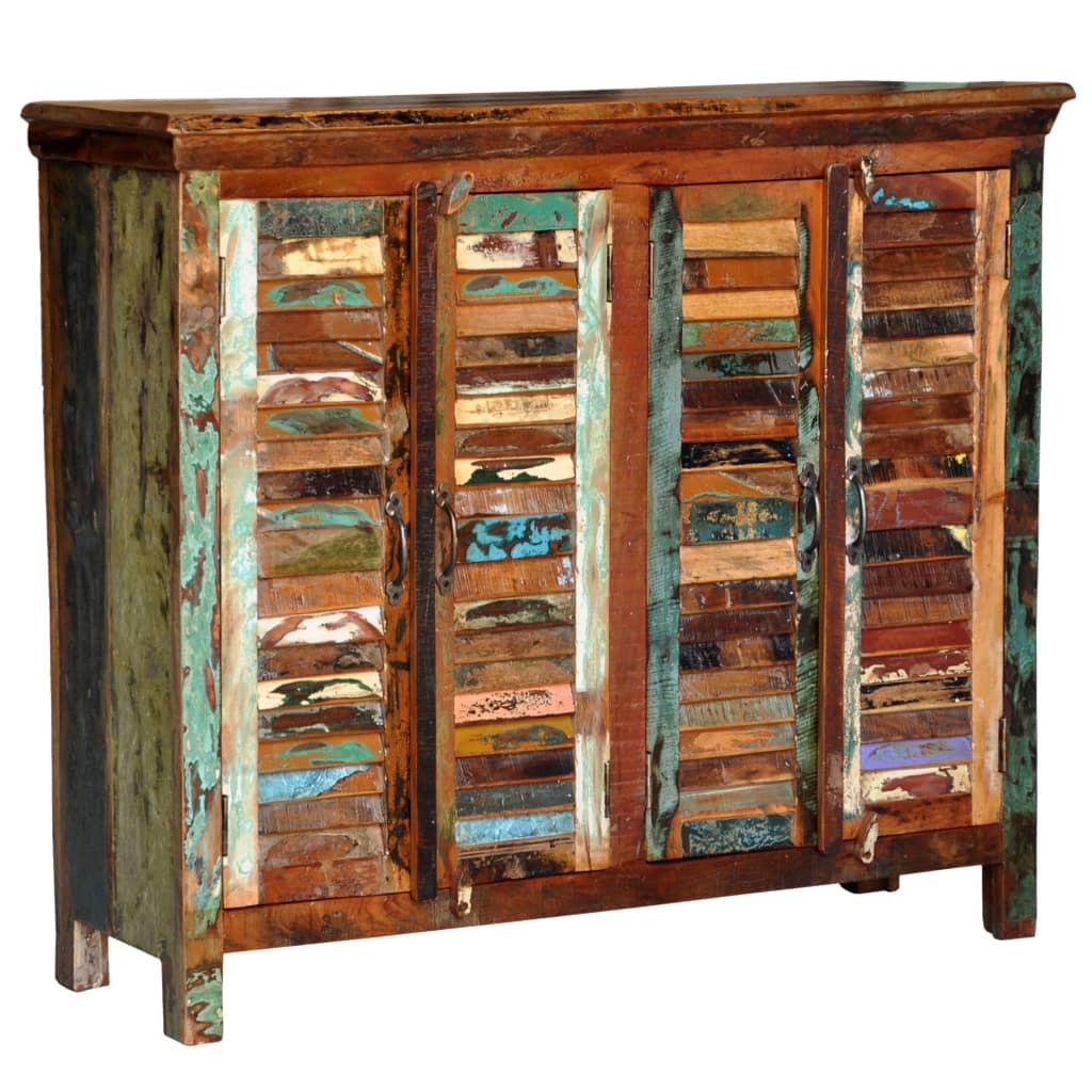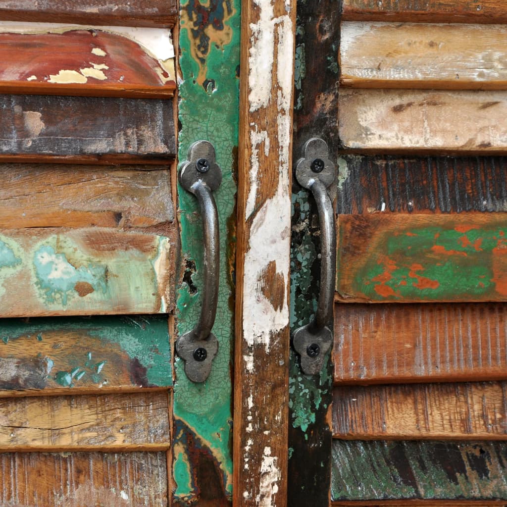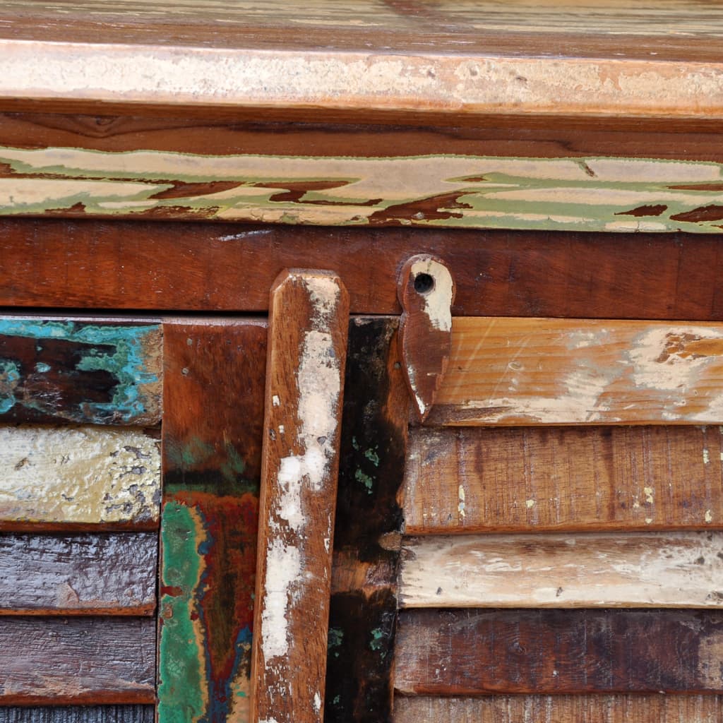 Skänken är tillverkad i återvunnet trä vilket betyder att varje möbel är unik och skiljer sig något från de andra. Möbler tillverkade av återvunnet trä har karaktärsdrag från olika träslag såsom teak, mangoträ, akacia, etc. Återvunnet trä är massivt, stadigt, hållbart och vackert. Spikhål och synlig ådring ger möbeln en historia och bjuder in ännu en generation att genomsyra den med sin alldeles egen sådan. Den här möbeln kommer att visa att du förstår koncept såsom resursskydd, miljöskydd och hållbar utveckling.