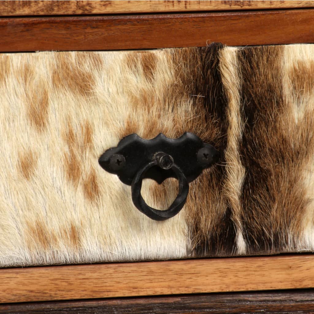 Vår eleganta träskänk med en detalj i äkta kohud och handsnidade dekorativa detaljer blir ett riktigt blickfång i ditt hem och presenterar samtidigt en ultimat lösning för att hålla dina saker organiserade och ur sikte.