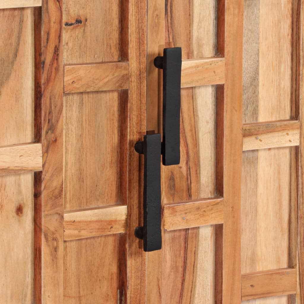Skänken är tillverkad i massivt akaciaträ som har belagts med en vacker ytbehandling genom polering och lackering för att få ett elegant utseende. De vackra träådringarna gör varje möbel unik och något annorlunda från de andra. Skänken har en robust och stabil ovansida där du kan ställa fruktkorgar eller dekorativa föremål. Den har 2 skåp med gott om utrymme för att förvara och hålla dina tidskrifter, böcker och andra föremål inom räckhåll. Monteringen är enkel.