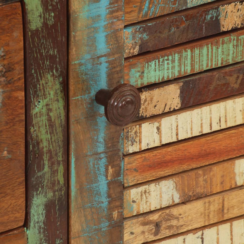 - Massivt återvunnet trä: Massivt återvunnet trä består av återanvänt virke som teak, mangoträ, furu och bok. Dessa träslag är återvunna från gamla byggnader som fabriker, skjul och båtar. Eftersom varje möbel är handgjord kommer färgerna att variera från möbel till möbel. Skänken är tillverkad av massivt återvunnet trä som är hållbart och vackert.