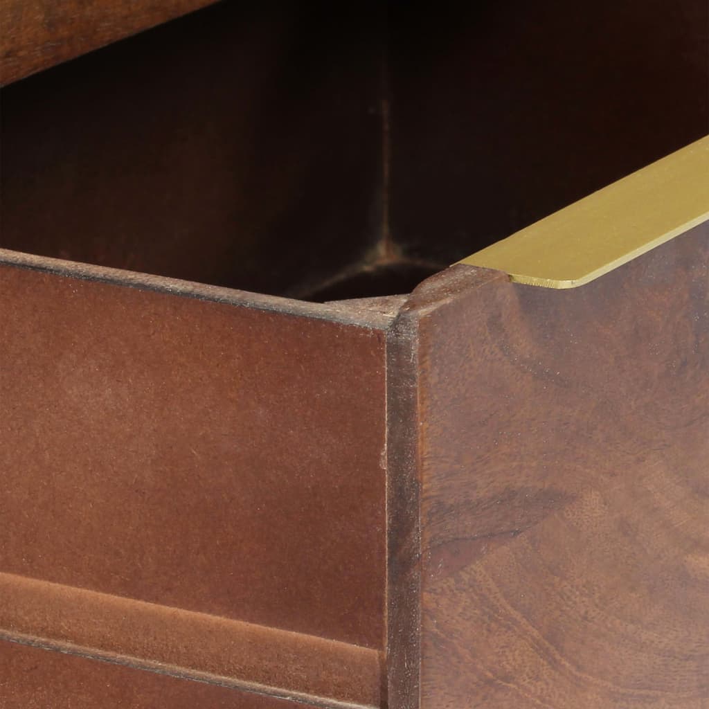 - Material: Massivt mangoträ med valnötsfinish, konstruerat trä