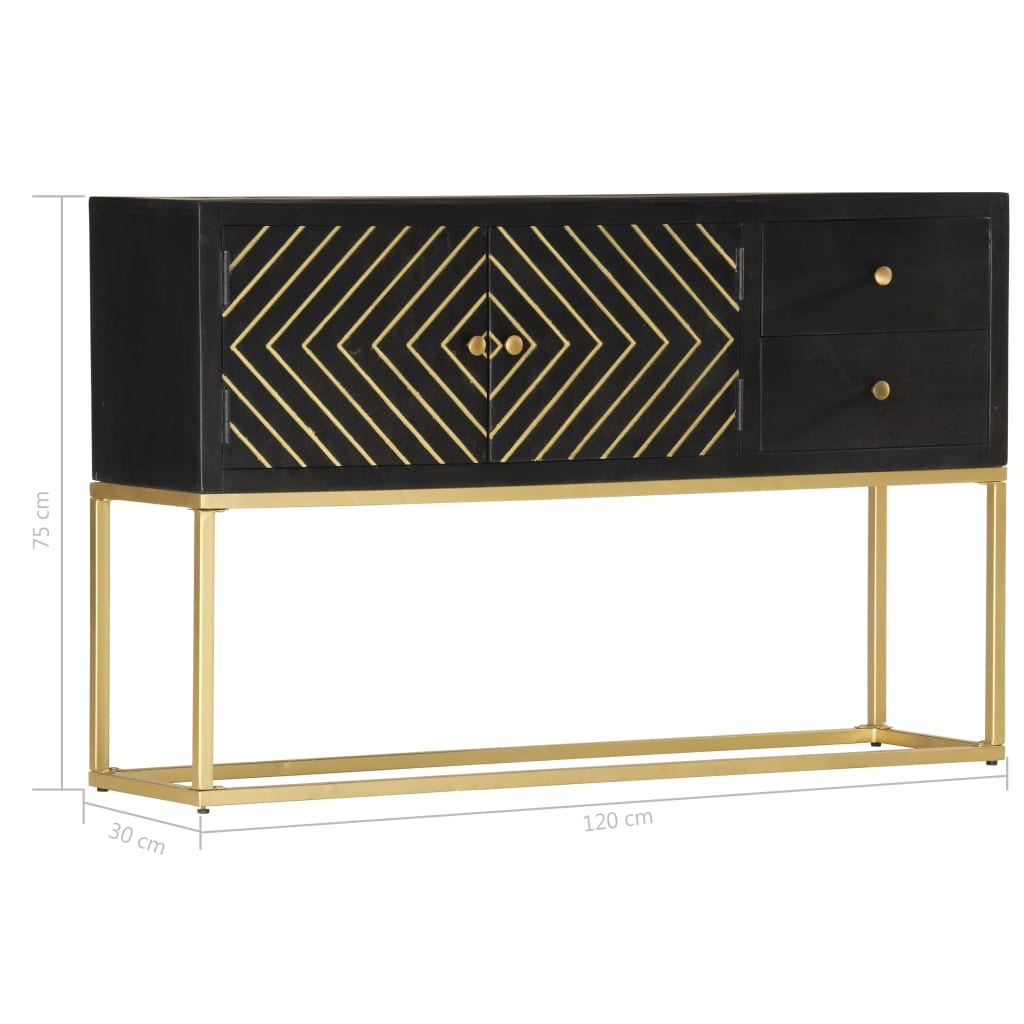 Avlastningsbord Konsollbord Svart och guld 120x30x75 cm massivt mangoträ