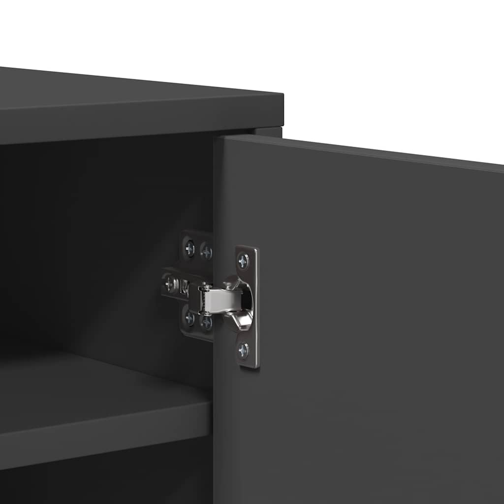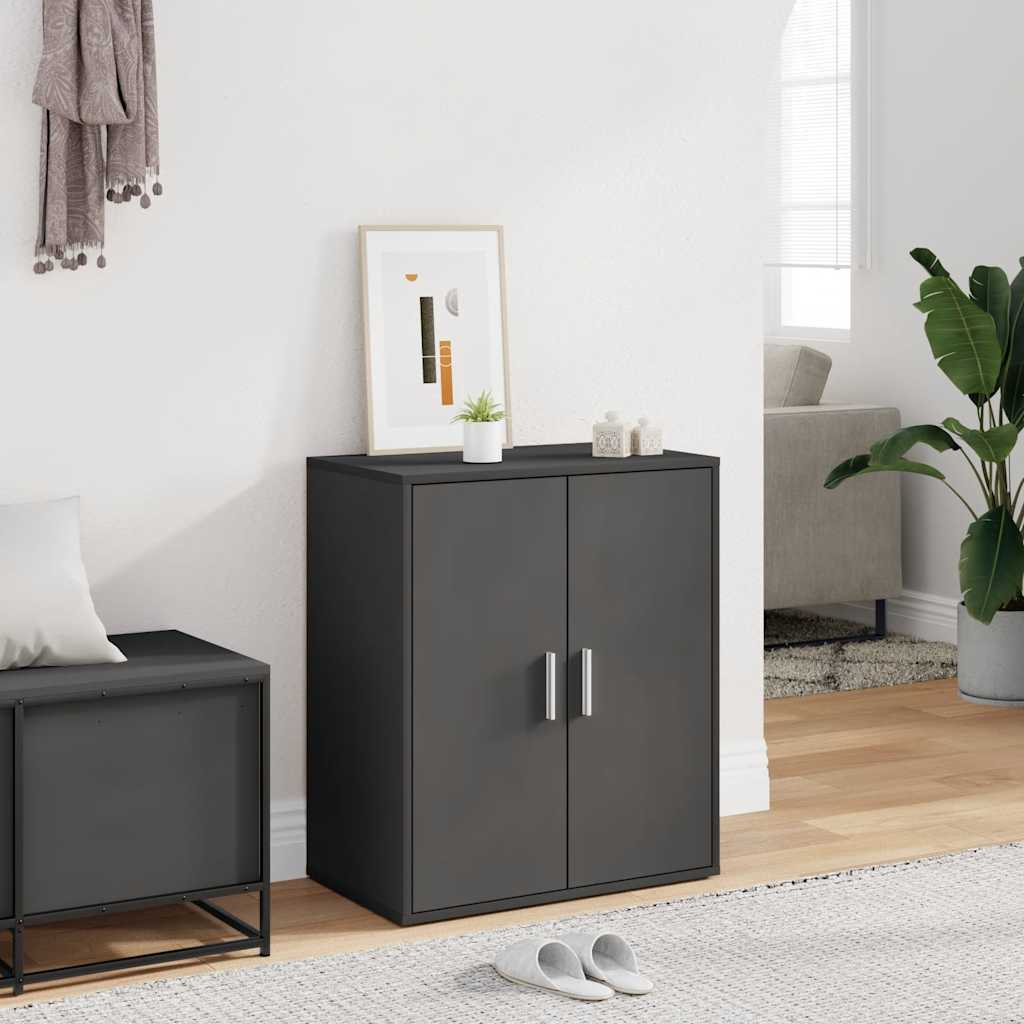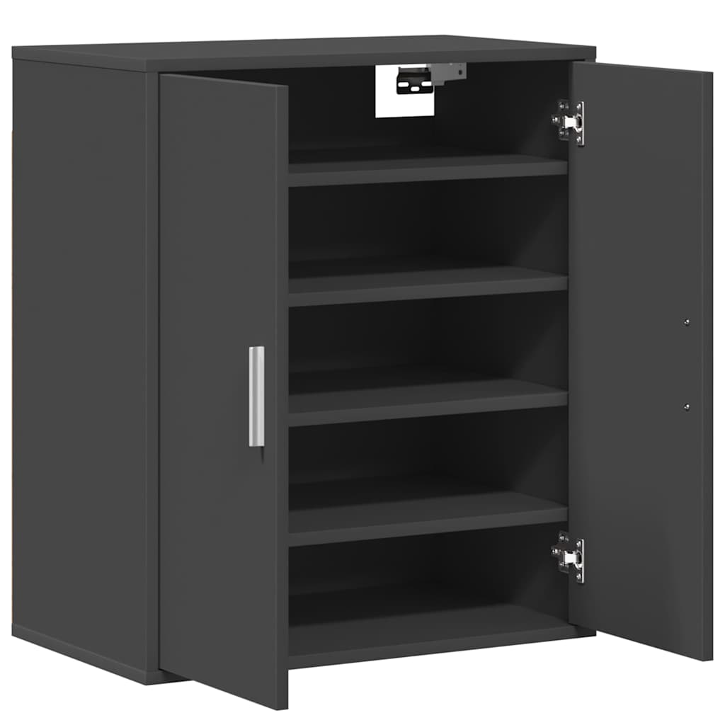 Hallskåpet är tillverkat av spånskiva och är mycket hållbart och robust. Det har 5 hyllplan med gott om plats att organisera skor. Tack vare de 2 dörrarna skyddar skomöbeln skorna från damm och håller dem utom synhåll. Dessutom kan den monteras på golvet eller väggen efter behov.