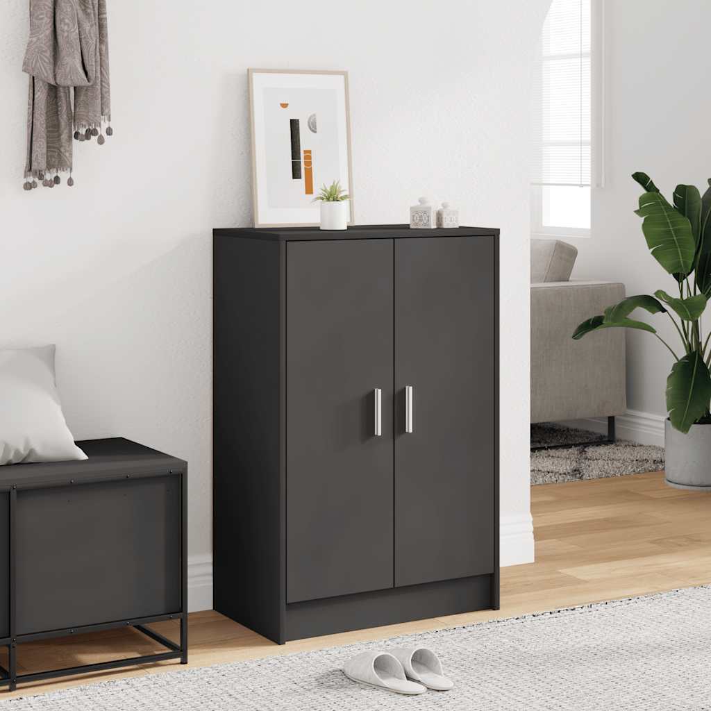 Det är tillverkat av högkvalitativ spånskiva som är elegant och gör det stabilt och hållbart. Tack vare dörrarna kan skorna förvaras inuti så att de inte syns. Dessutom är skåpet tillräckligt stort för att förvara många skor.