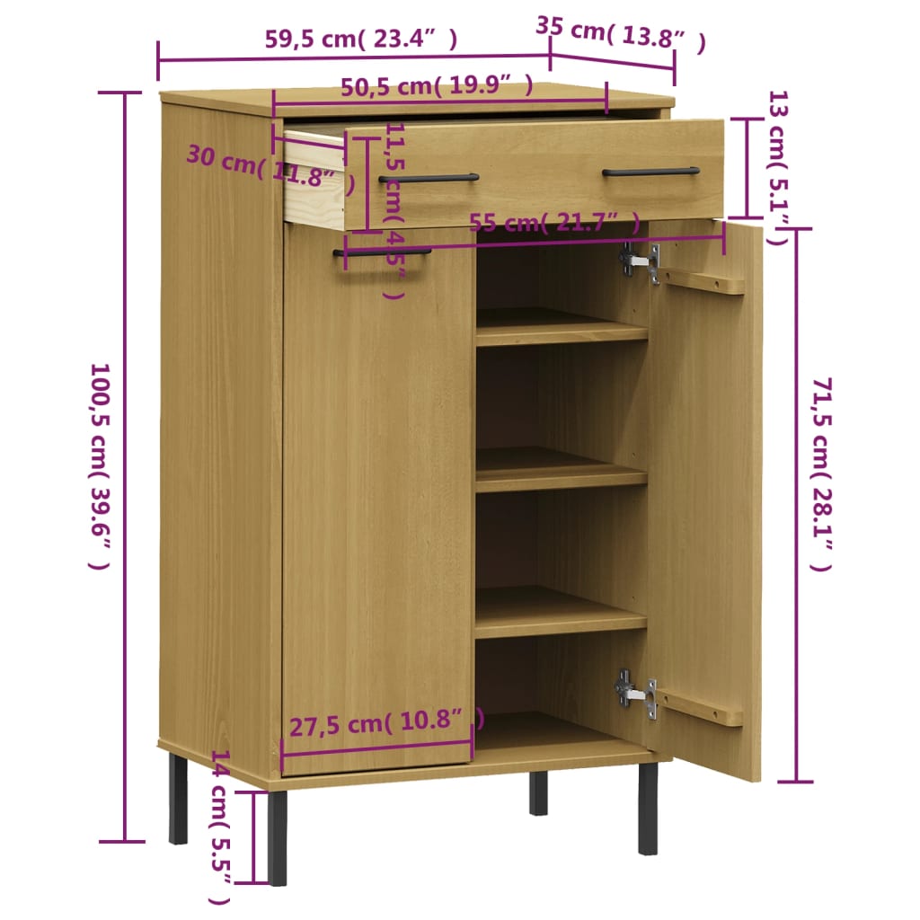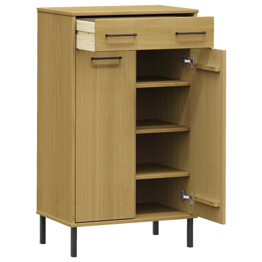 Skoställ Trä Skoskåp med metallben OSLO Brun massiv furu