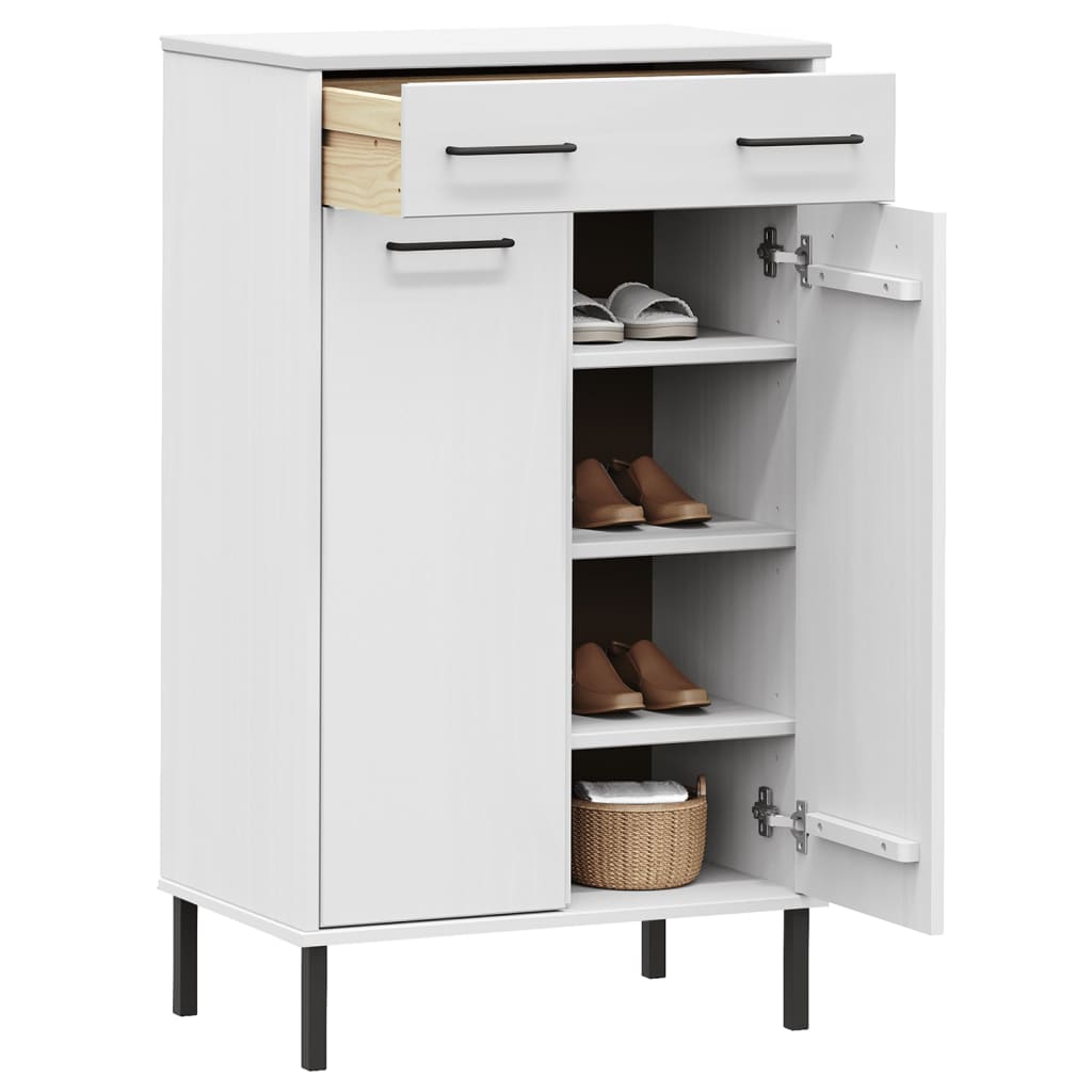 Skoställ Vit Skoskåp med metallben OSLO massiv furu