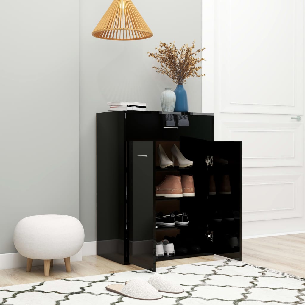 Skoställ Högglans Svart Skoskåp 60x35x84 cm