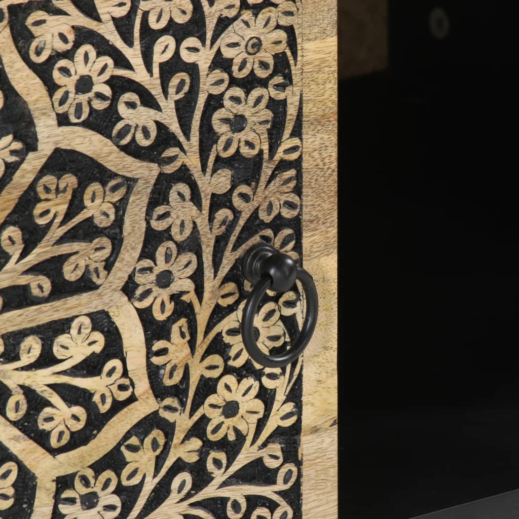 - Material: Massivt mangoträ med naturlig yta, konstruerat trä, järn