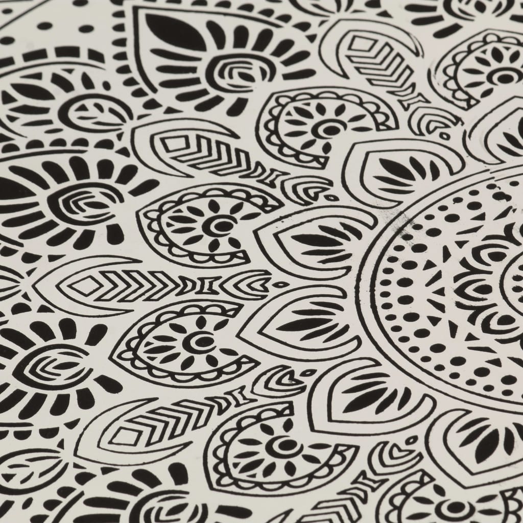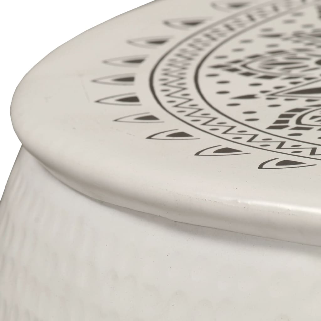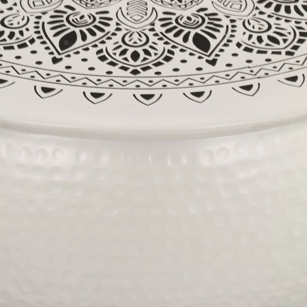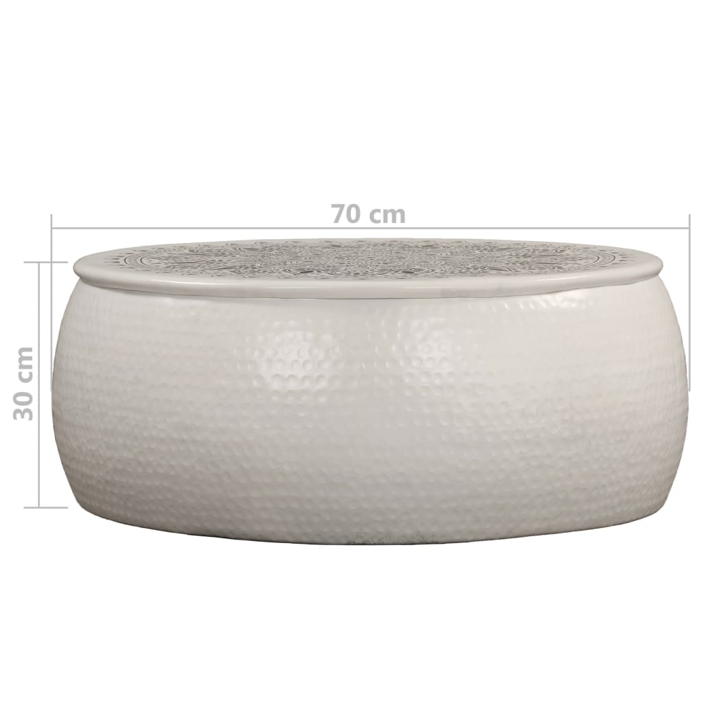 Detta soffbord är tillverkat av hamrad aluminium som är hållbart och av hög kvalitet. Vårt bord har en stadig bordsskiva där du kan ställa mat eller drickor, eller visa upp dekorativa föremål som fotoramar eller till och med krukväxter. Det har en vacker målning på bordsytan. Det snygga hamrade utseendet ger även bordet en taktil struktur.