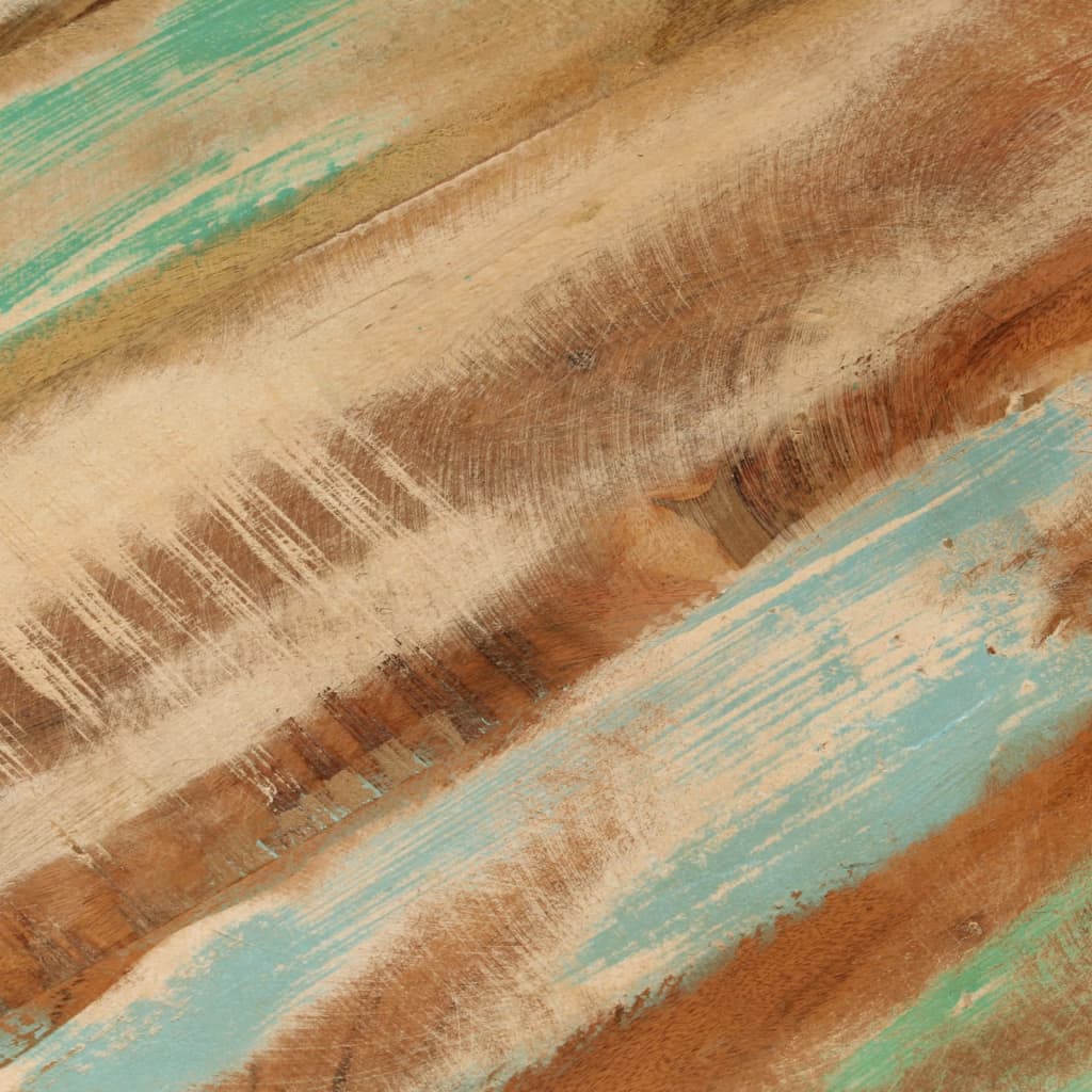 - Massivt återvunnet trä: Massivt återvunnet trä består av återanvänt virke som teak, mangoträ, furu och bok. Dessa träslag är återvunna från gamla byggnader som fabriker, skjul och båtar. Eftersom varje möbel är handgjord kommer färgerna att variera från möbel till möbel.