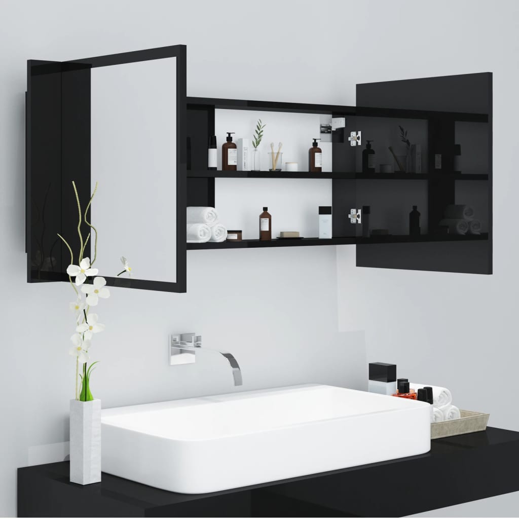 Badrumsspegel Spegelskåp LED Högglans Svart 100x12x45 cm akryl
