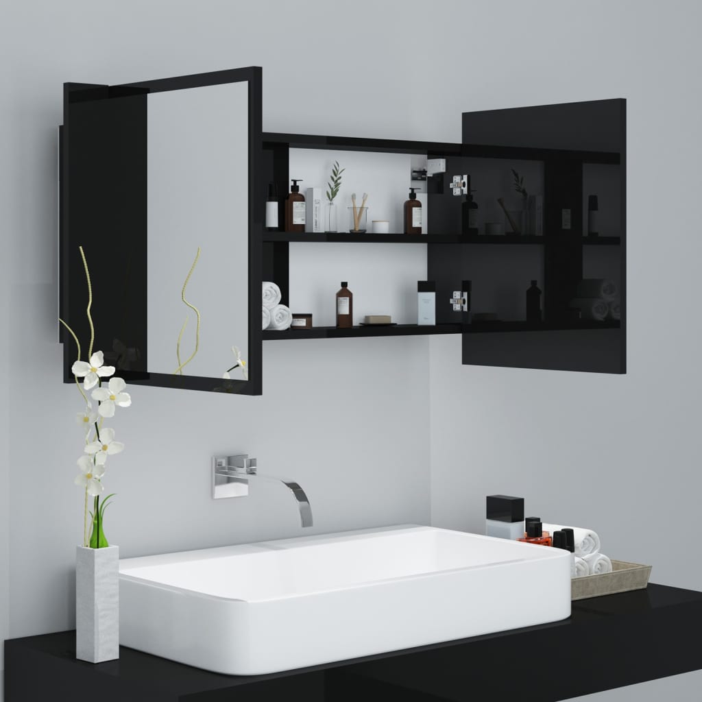 Badrumsspegel Spegelskåp LED Högglans Svart 90x12x45 cm akryl