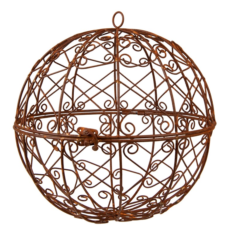 Vacker och dekorativ koppar/rostfärgad metallkula. De två halvorna av kulan är fästa vid varandra med hjälp av ett gångjärn.