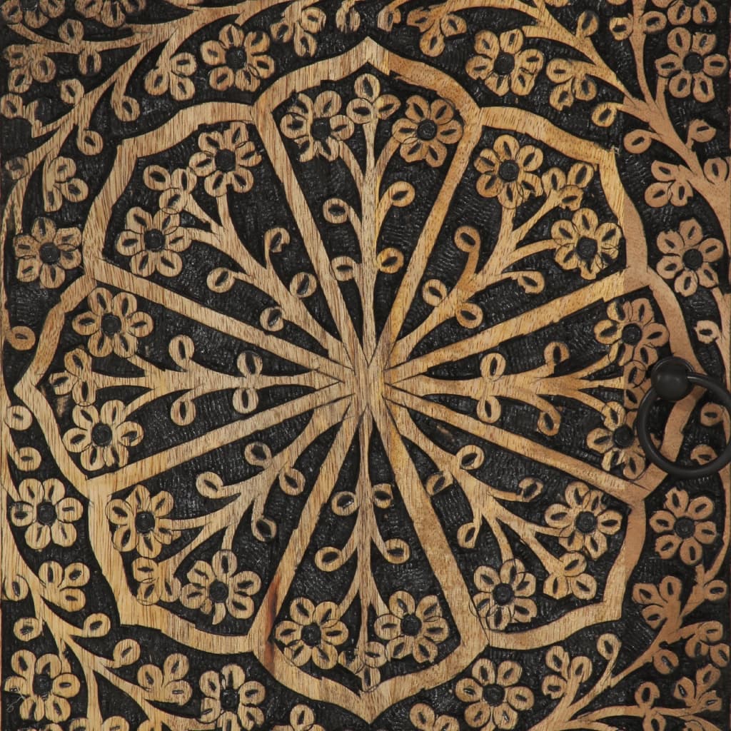 - Material: Massivt mangoträ med naturlig yta, konstruerat trä, järn