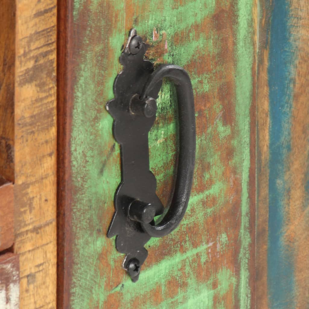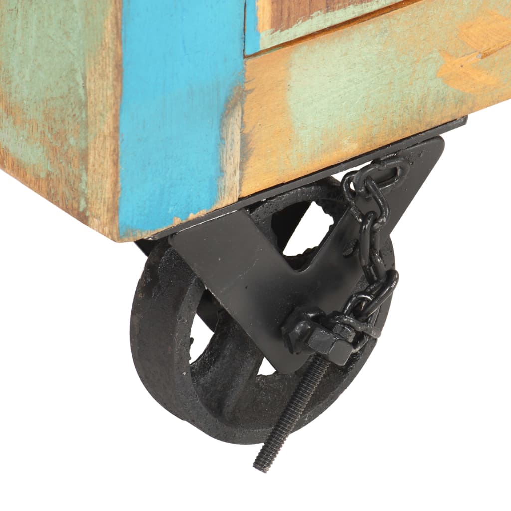 TV-bänken är tillverkad i återvunnet trä, som innebär att den har karaktärsdrag från olika typer av trä såsom furu, teak, ek, mangoträ, akacia med mera. Återvunnet trä är redan åldrat, väderbitet och torkat så det varken krymper eller böjs. Tecken på slitage och fina träådringar gör varje möbel annorlunda från varandra. Varje steg i processen utförs med största noggrannhet, vare sig det är polering, målning eller lackering. Dessutom kan du enkelt flytta TV-bänken tack vare dess 4 gjutjärnshjul.