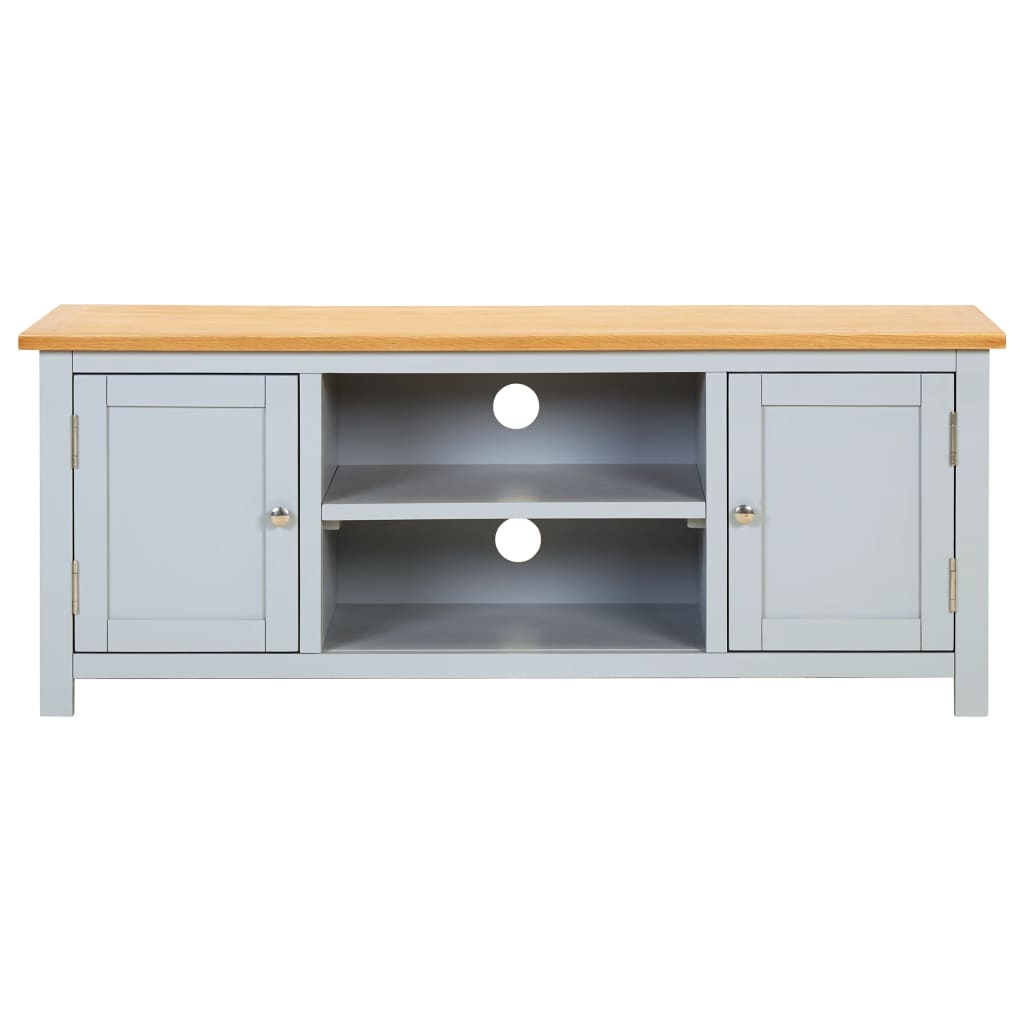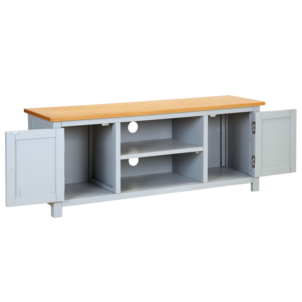 TV-bänken har en ovansida i massiv ek som bidrar till dess stadighet och hållbarhet. Ekträet har vackra ådringar som ger möbeln en känsla av naturlig charm. Huvuddelen är tillverkad i massiv furu med vit finish och en modern stil. TV-bänken har 2 dörrar och 2 utrymmen med gott om plats för att förvara dina multimedia-enheter, böcker och andra saker. Tack vare kabelutgångarna på baksidan kan du prydligt hålla alla kablar utom synhåll.