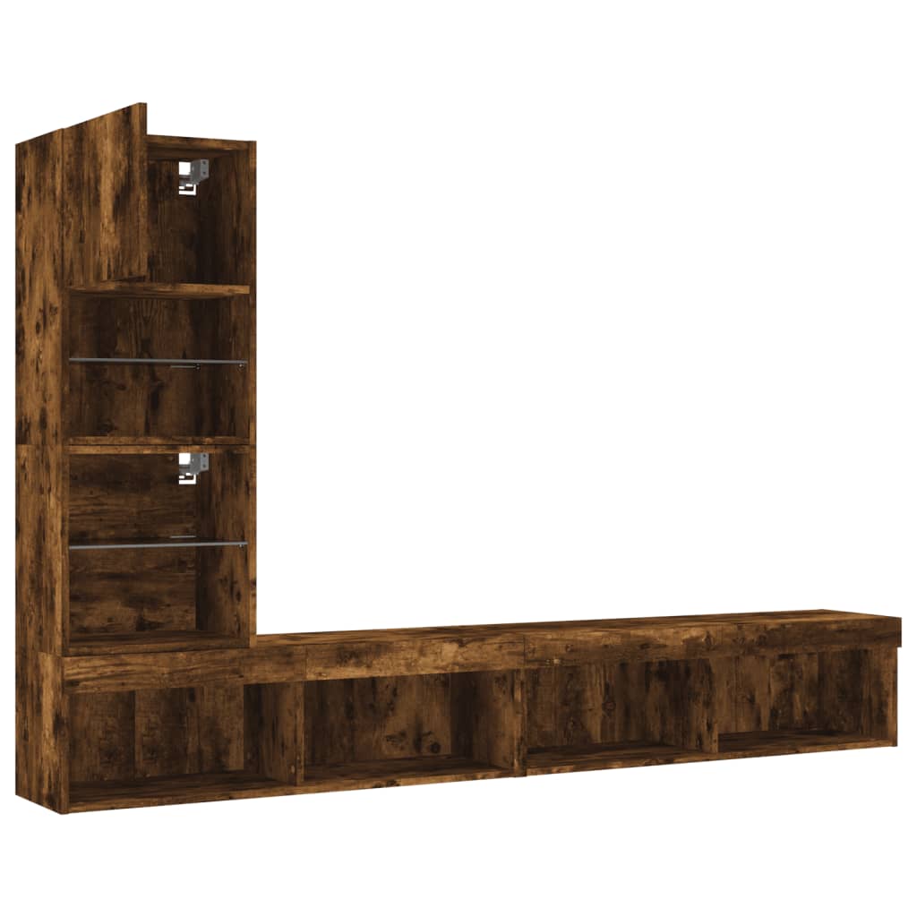 Tv-bänk 4 delar LED rökfärgad ek konstruerat trä
