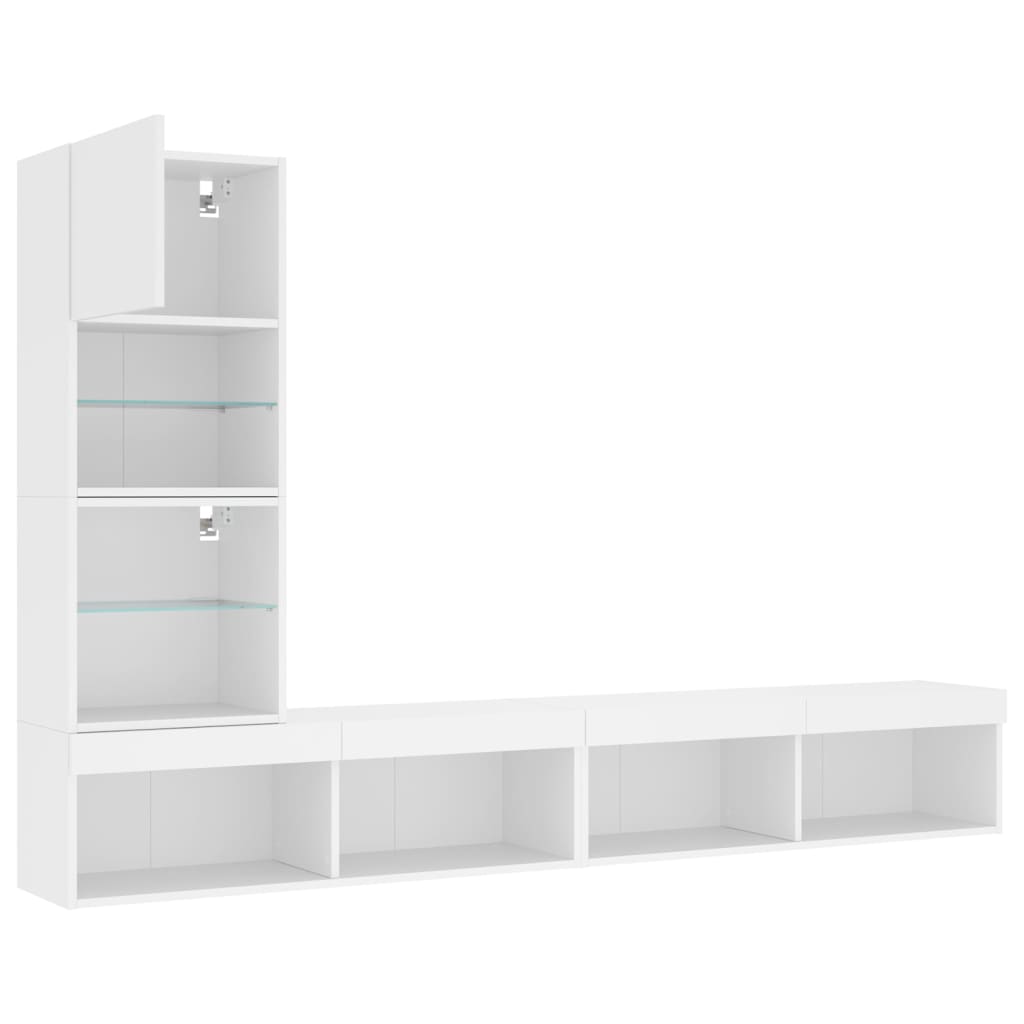 - RGB LED-lampor: Skåpet är utrustat med RGB LED-lampor. Med olika anpassningsbara menyer kan du enkelt ändra färg på lamporna och till och med ställa in dem så att de justeras automatiskt. Dessa LED-lampor förbättrar inte bara tv-bänkens moderna utseende utan bidrar också till dess trendiga utseende.