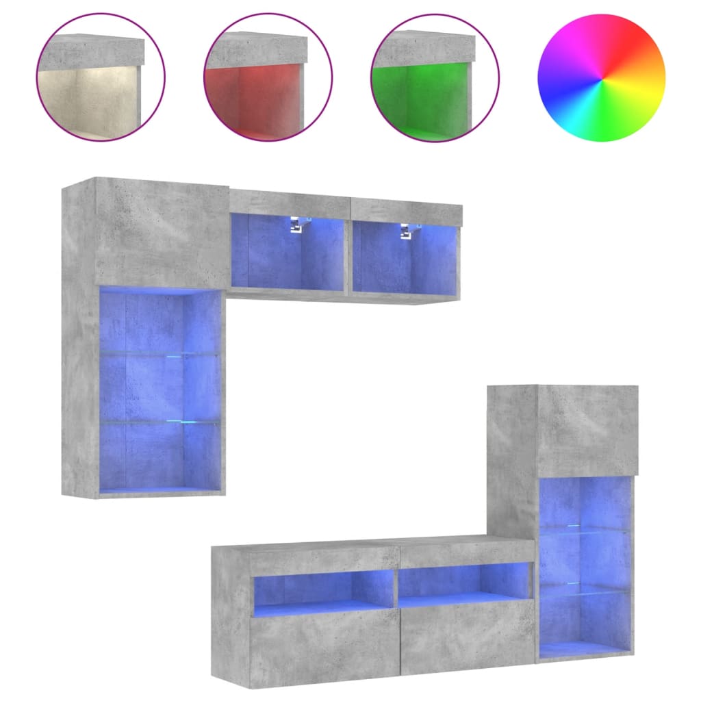 Tv-bänk 5 delar LED betonggrå konstruerat trä