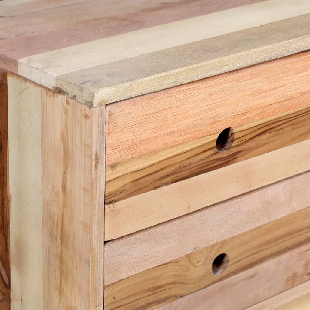 TV-bänken är tillverkad av återvunnet trä, vilket gör att varje möbel är unik och skiljer sig lite från andra. Möbler av återvunnet trä har karaktärsdrag från olika träslag som teak, mangoträ och akacia. Återvunnet trä är massivt, stabilt, hållbart och vackert. Tecken på nötning och synliga ådringar gör att varje möbel har sin egen historia och ett unikt utseende.