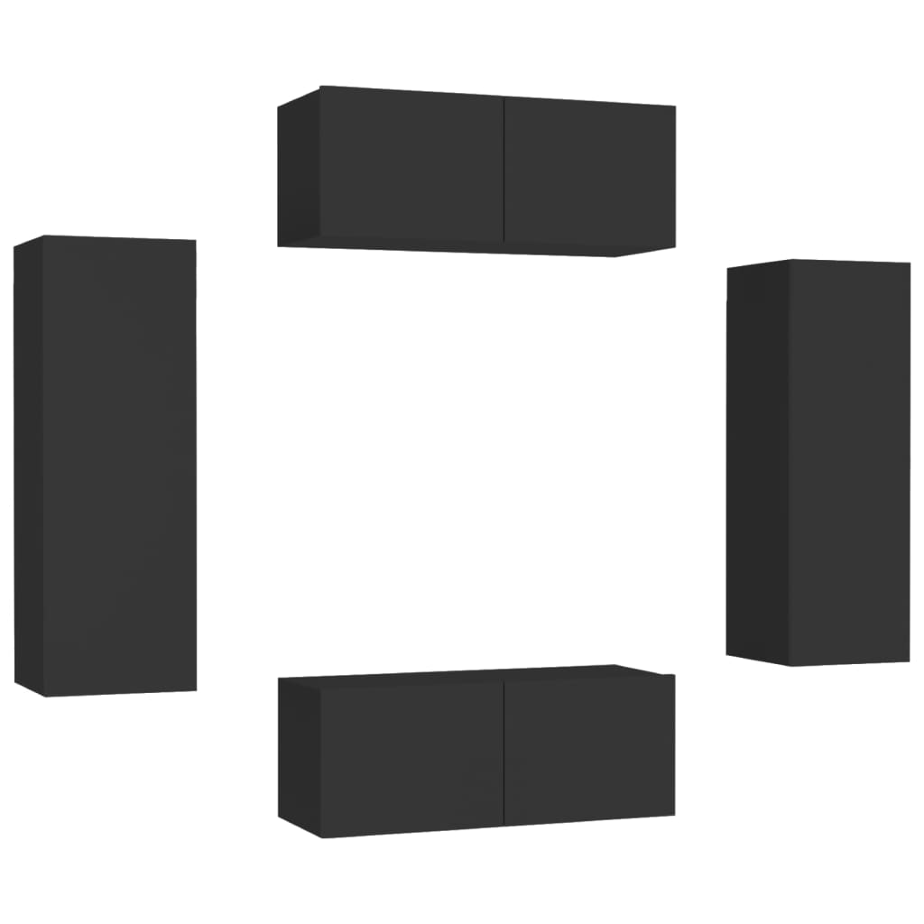 TV-skåp set 4 delar svart konstruerat trä