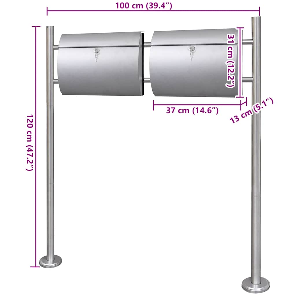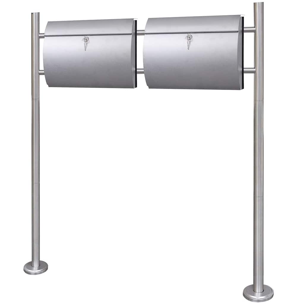 Setet innehåller ett stativ med två separata brevlådor som båda har brevinkast, ett smart lock, två nycklar, och en tidningshållare. Vår högkvalitativa brevlåda är ett perfekt val!