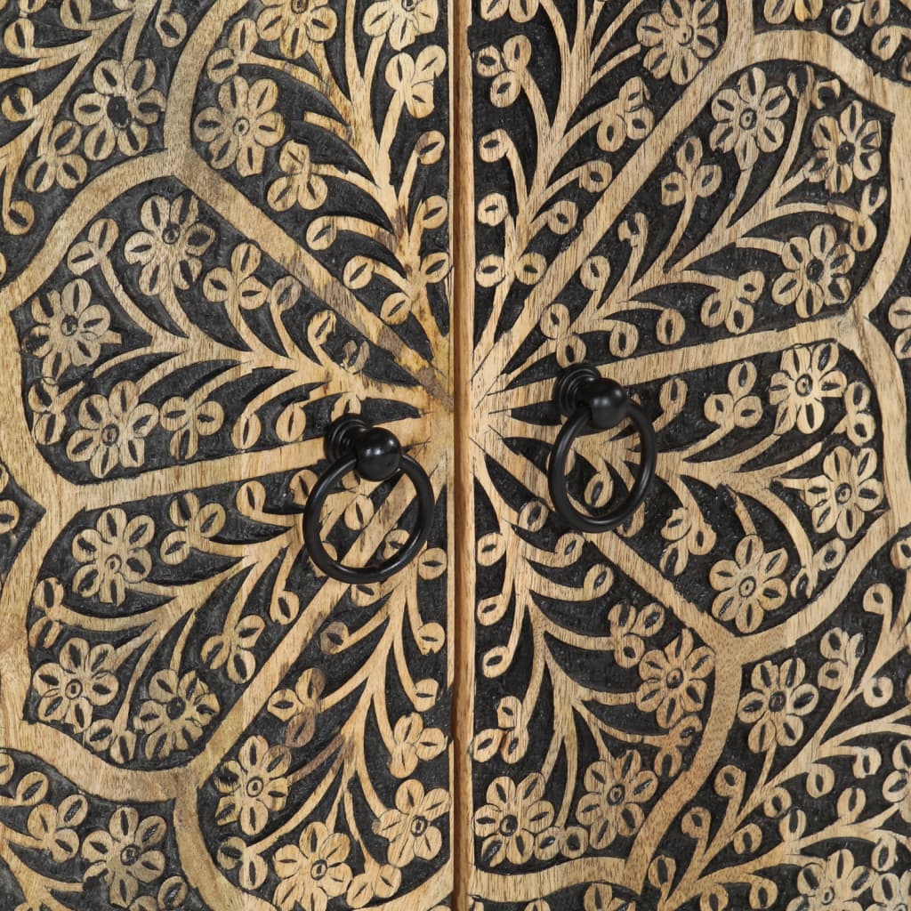 - Massivt mangoträ: Massivt mangoträ är ett starkt, tropiskt träslag som ger robusta möbler. Dess vackra träfibrer gör varje möbel något unik. Skåpet är tillverkat av massivt mangoträ och är hållbart och stabilt.