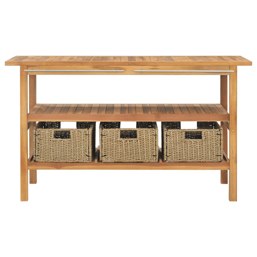 Handfatsskåpet är konstruerat av massivt teak som är hållbart och robust nog för att ställa ett handfat ovanpå, samt andra toalettartiklar. Badrumsskåpet har en handdukshållare för att hänga handdukar eller kläder. Den har också fyra stödben för att säkerställa stabilitet och torrhet över marken. Det fina handfatet är användarvänligt för vardagen och är en underbar prydnad till hemmet. De 3 korgarna längst ned gör badrummet städat och snyggt då saker förvaras utom synhåll. Handfatet är helt handgjort av vacker marmor och är otroligt robust och samtidigt elegant. Dessutom är tvättstället mycket lätt att rengöra. Skåpet passar perfekt under handfaten och skapar praktisk förvaring.