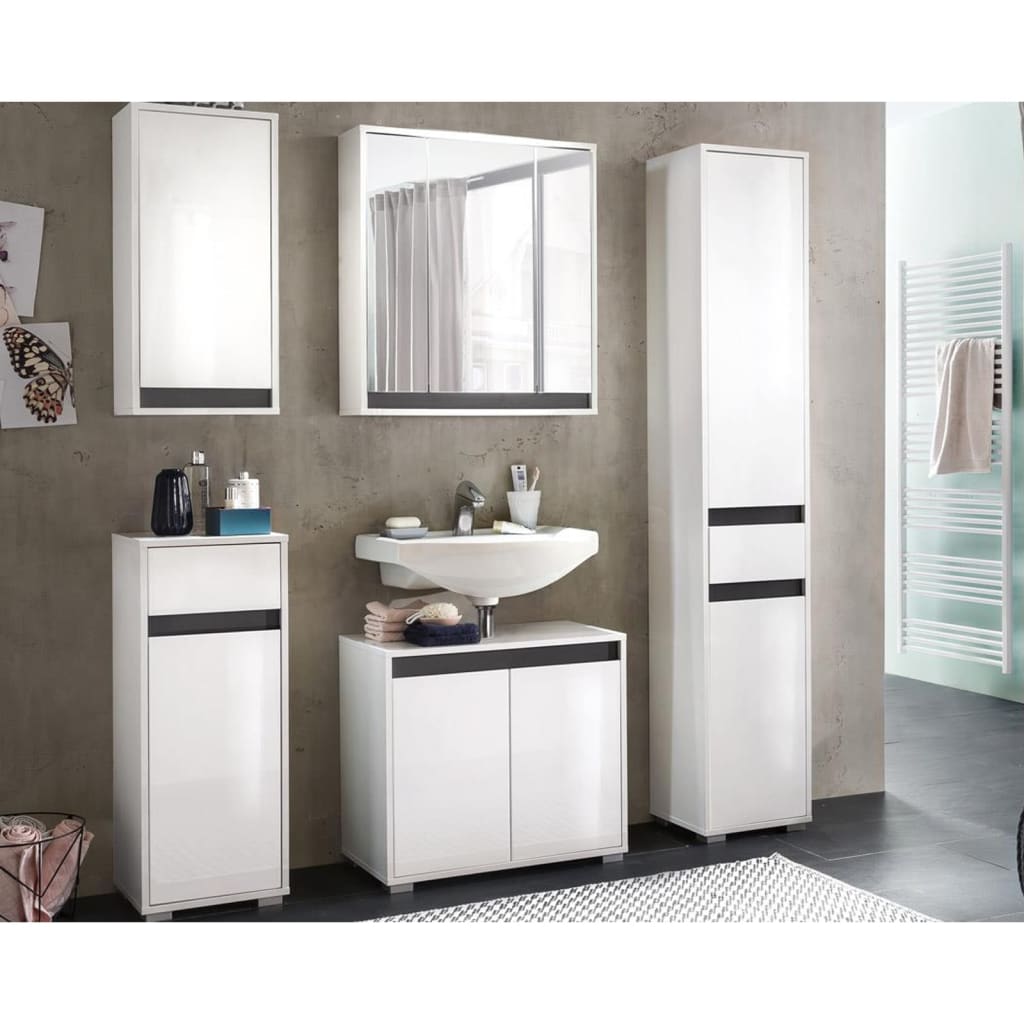 - Vit högglans: De vita fronterna och stommen skapar en tidlös stil som smälter in harmoniskt i ditt badrum. Ytan, som är lämplig för våtrum, är särskilt slitstark och lättskött.