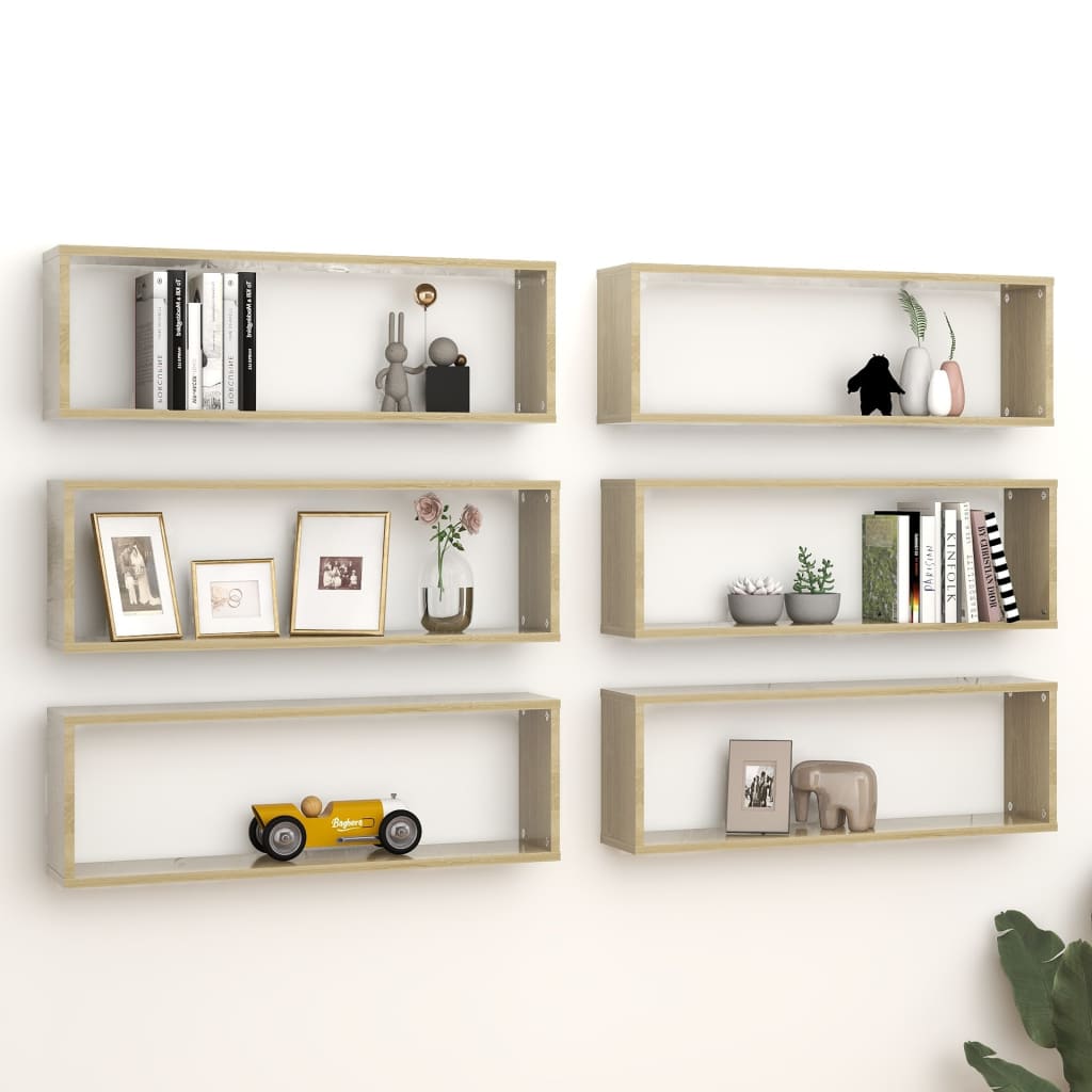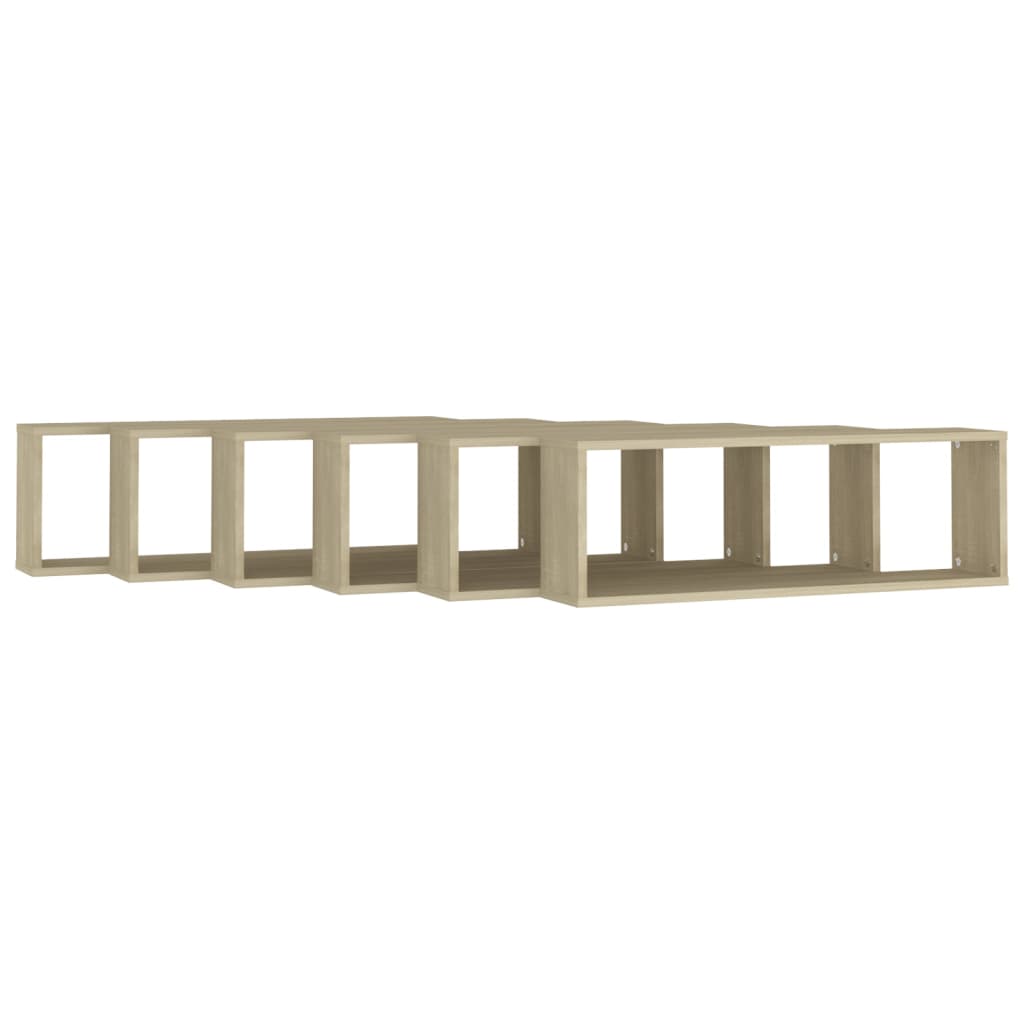 Vägghylla kubformad 6 st sonoma-ek 80x15x26,5cm konstruerat trä