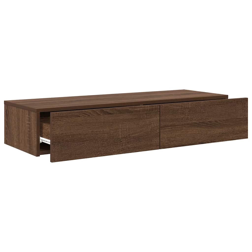 Vägghylla med lådor brun ek 100x36x19 cm konstruerat trä