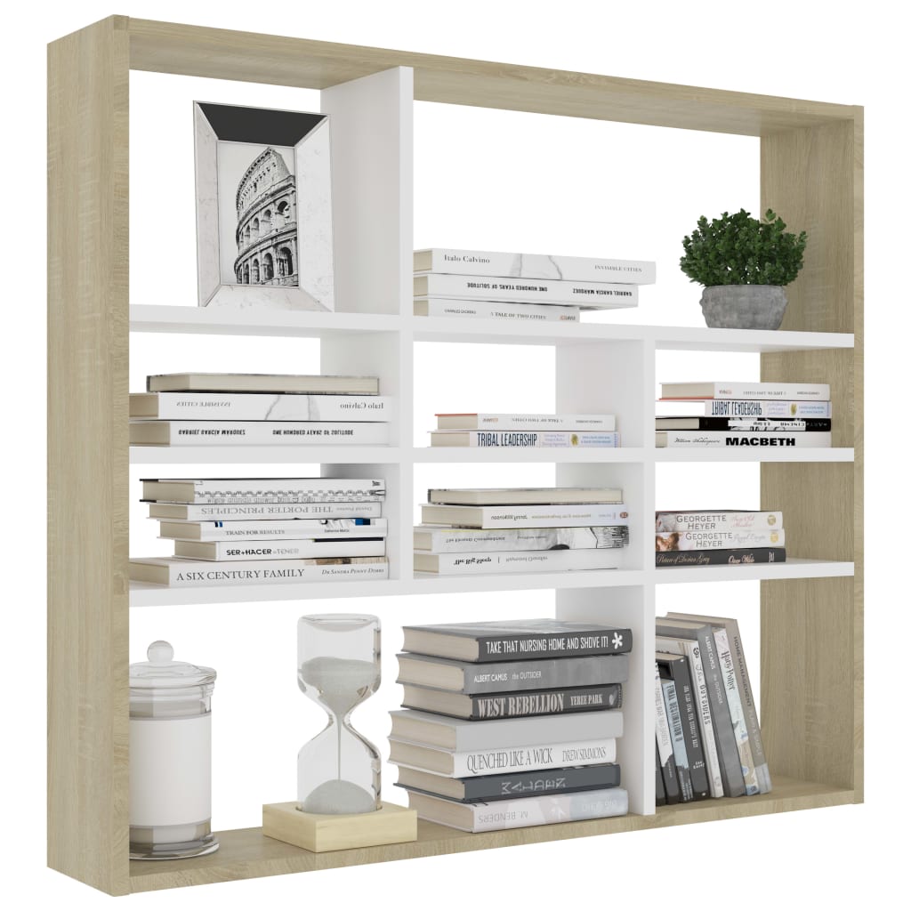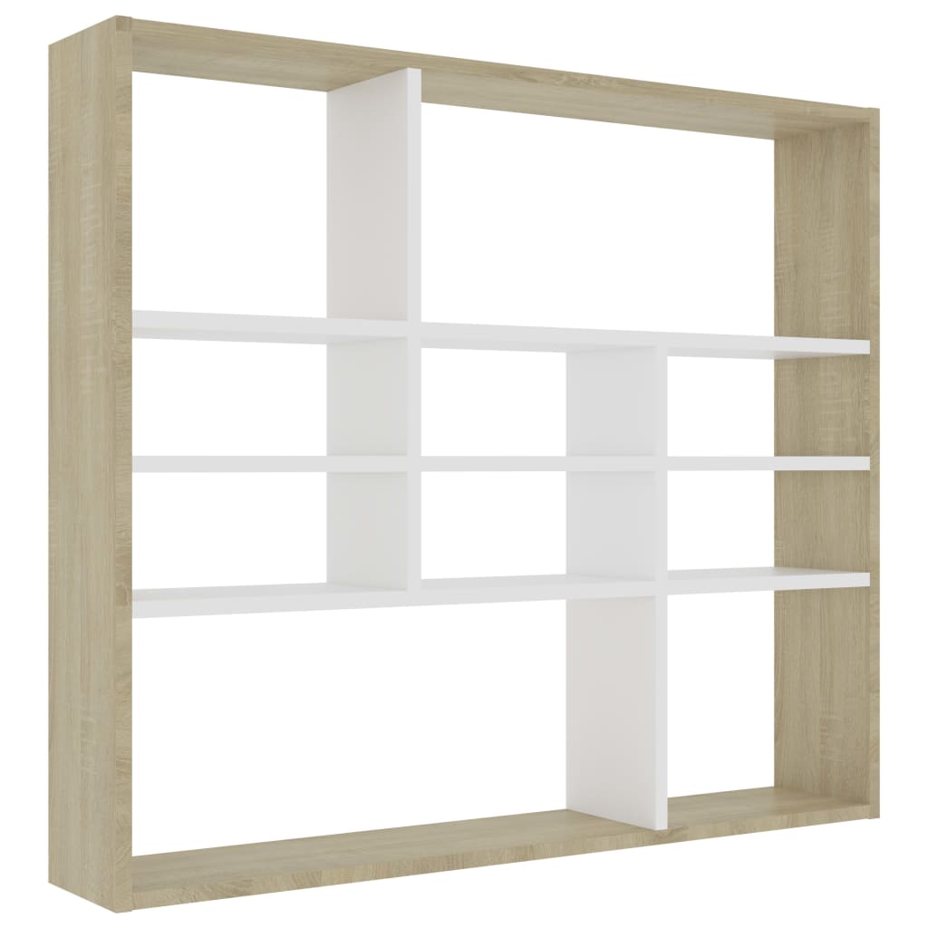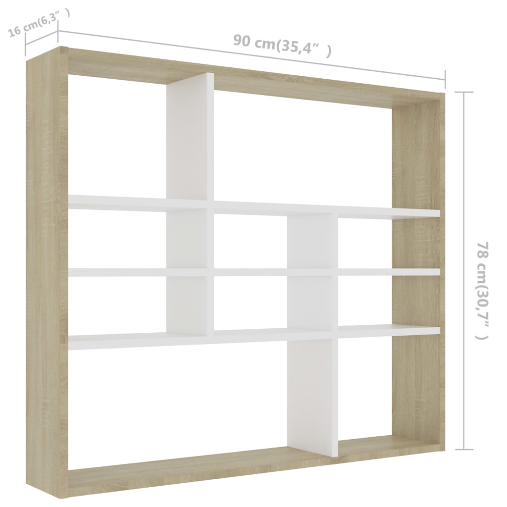 Vägghylla Vit och Sonoma Ek 90x16x78 cm