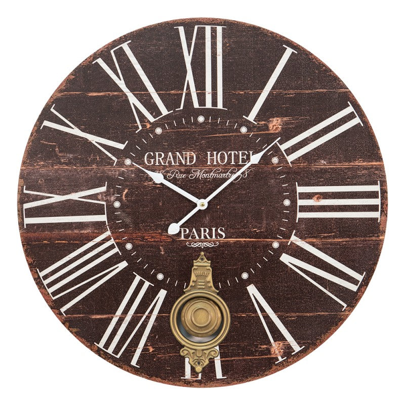 Väggklocka med rörlig pendel 58x4 cm Brun MDF