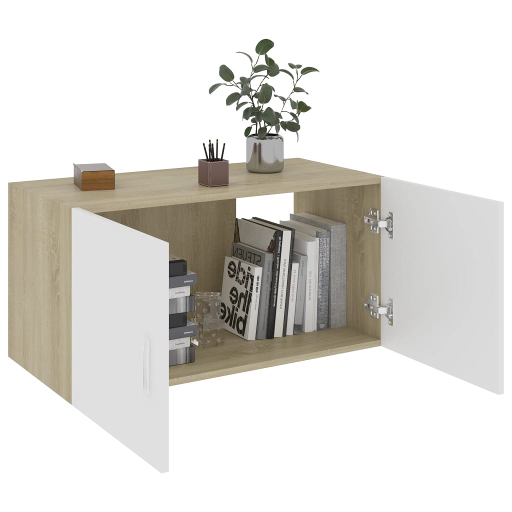 Väggskåp Vit och Sonoma Ek 80x39x40 cm