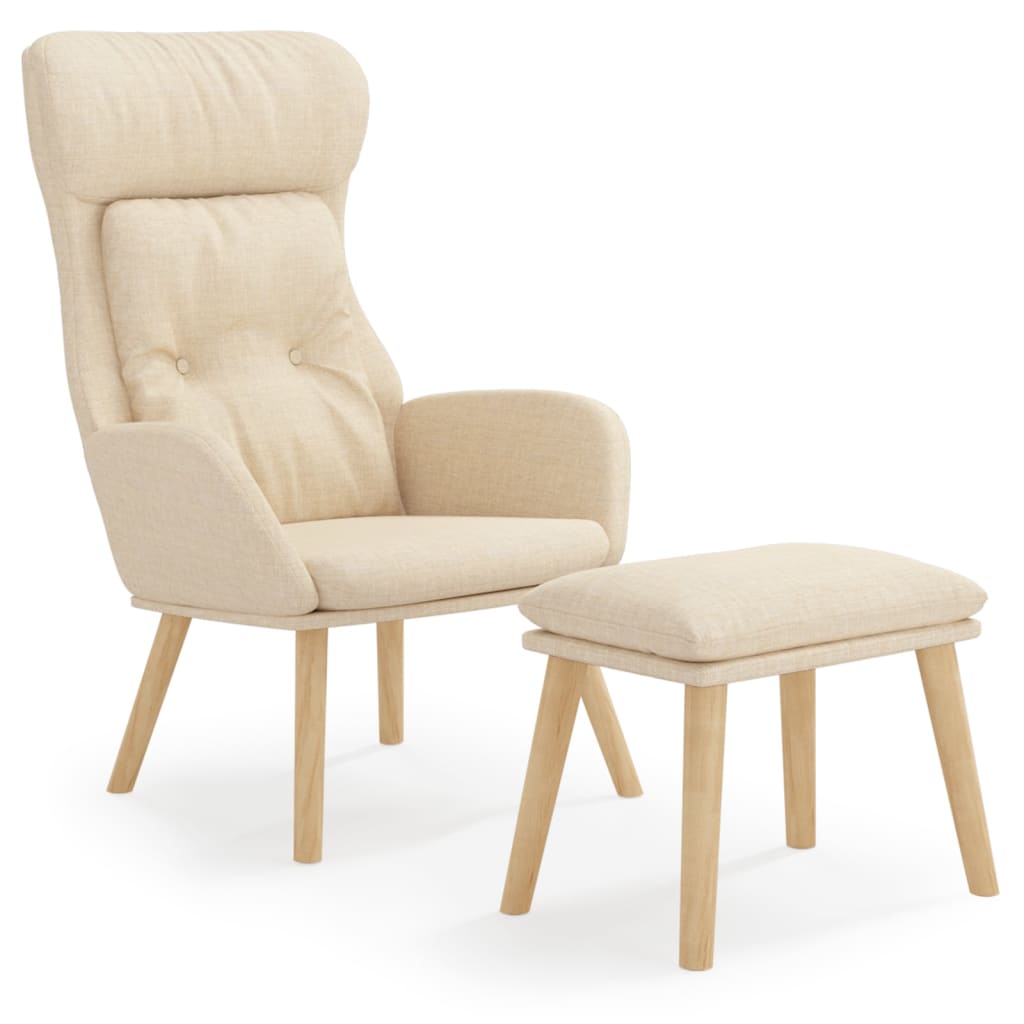 Fåtölj Gräddvit Vilstol med fotpall Tyg