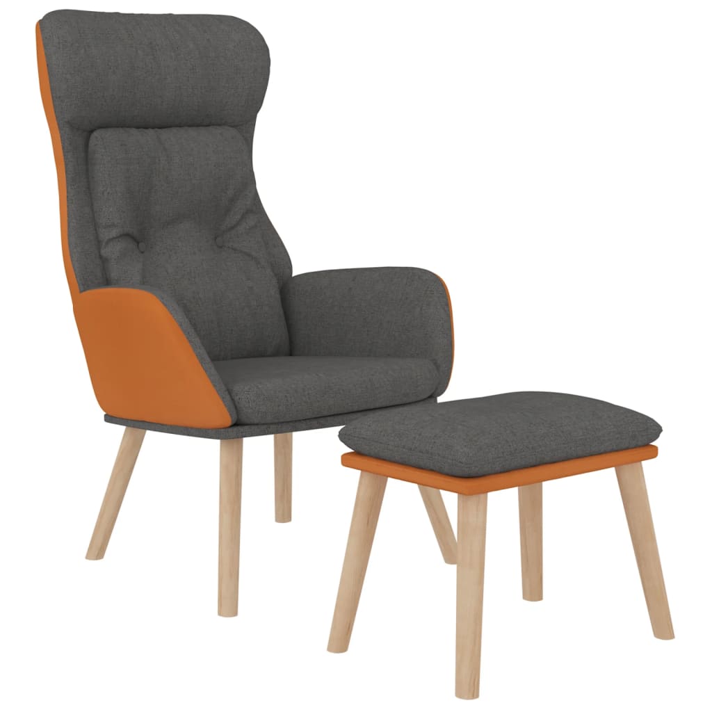 Fåtölj Mörkgrå Vilstol med fotpall konstläder och tyg