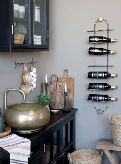 Vinställ Vinhållare till vägg H109/L29/B9 cm mässing